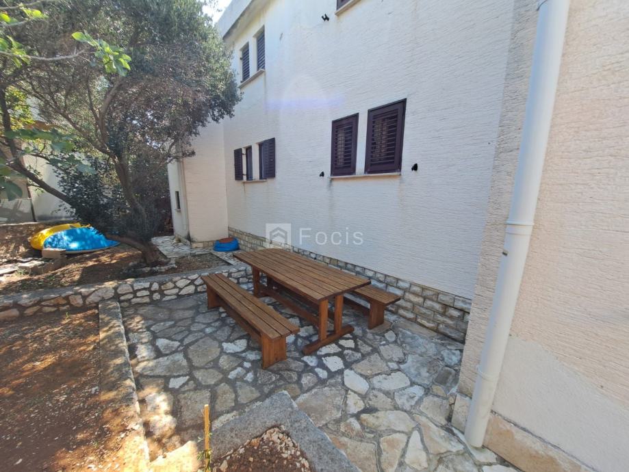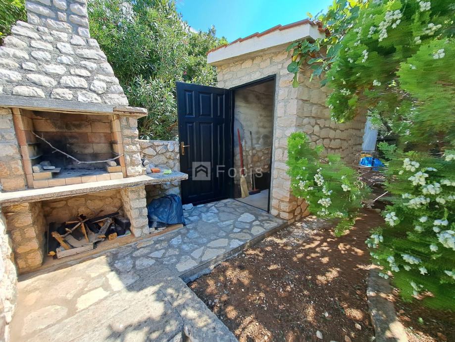 Oko kuće se proteže veliko uređeno zeleno dvorište sa vanjskim prostorom za blagovanje iza kuće s kaminom i ostavom površine 5 m2.