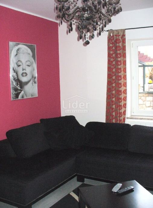 Kostrena, 70m2, komforan jednosoban stan sa dnevnim boravkom, novouređeno, moderno namješten, veliko dvorište, osiguran parking, centralno grijanje, iznajmljuje se.