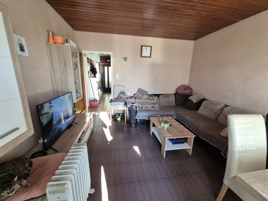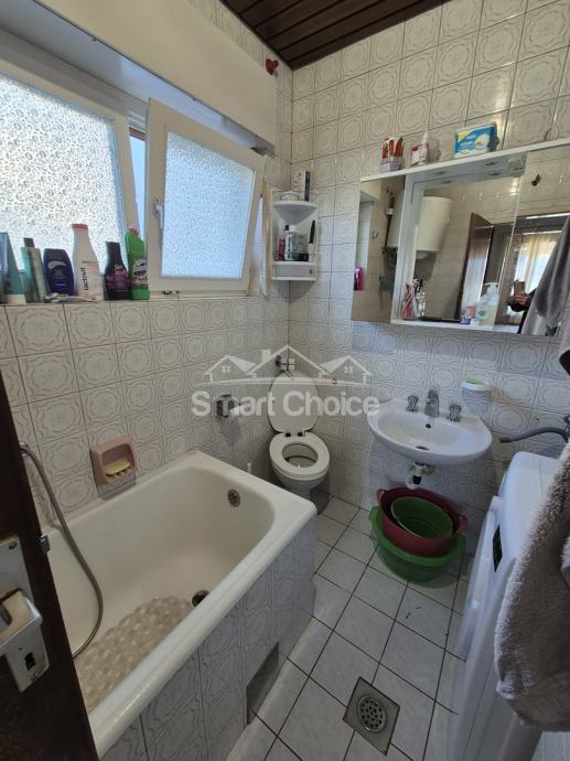 Kostrena - 2s+db ( etaža ) od 65m2. Stanu pripada balkon od 10m2 s kojeg s pruža pogled na more. Kuća ima uporabnu dozvolu i stan je moguće kupiti na kredit. Krov je u dobrom stanju, isto kao i fasada. Stan ima 2 komforne spavaće sobe, kupaonu, kuhinju i ulaznu verandu. Poseban ulaz.