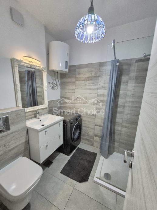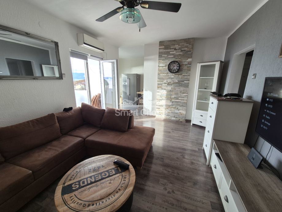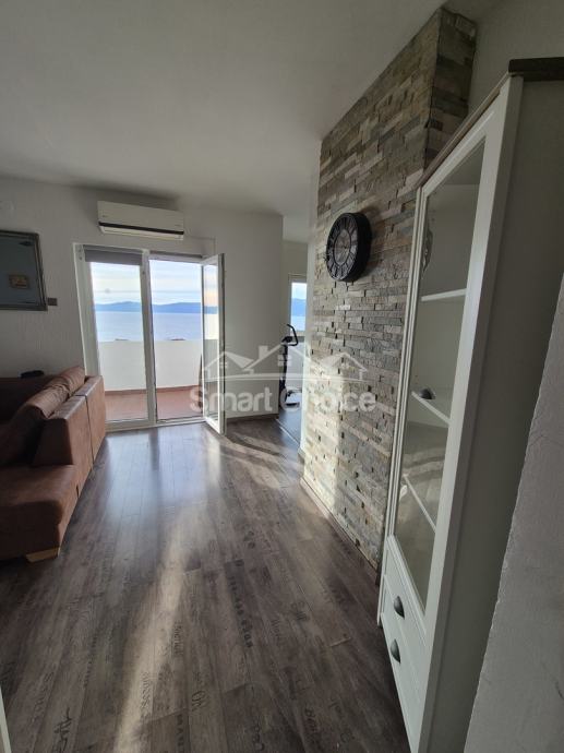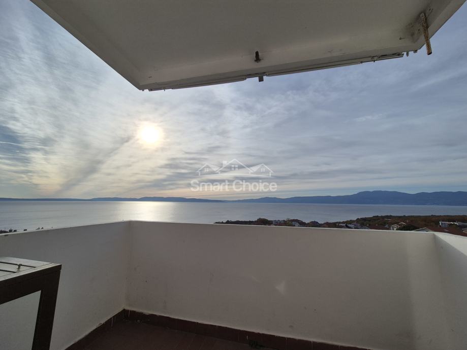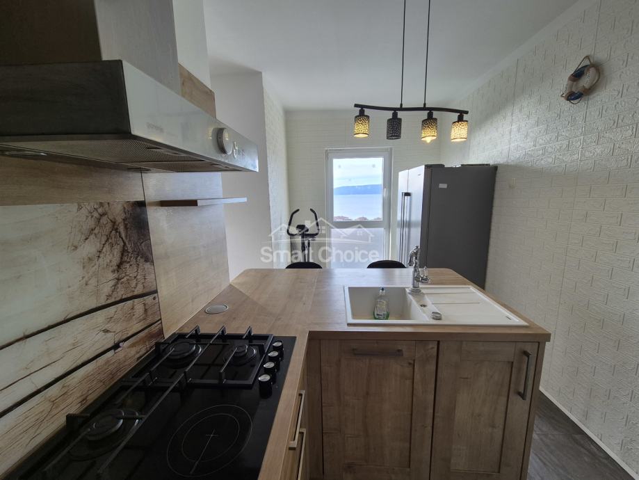 Kostrena 2s+db s balkonom u blizini mora. Novije uređen s pogledom na more. Parking oko zgrade. Stan se sastoji od 2 spavaće sobe,dnevnog boravka, kuhinje s blagovaonom, balkona, zatvorene loggie i ostave. Ima etažno centralno grijanje na struju i klimu.