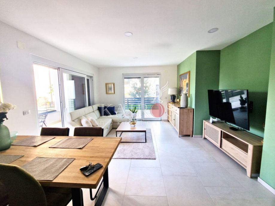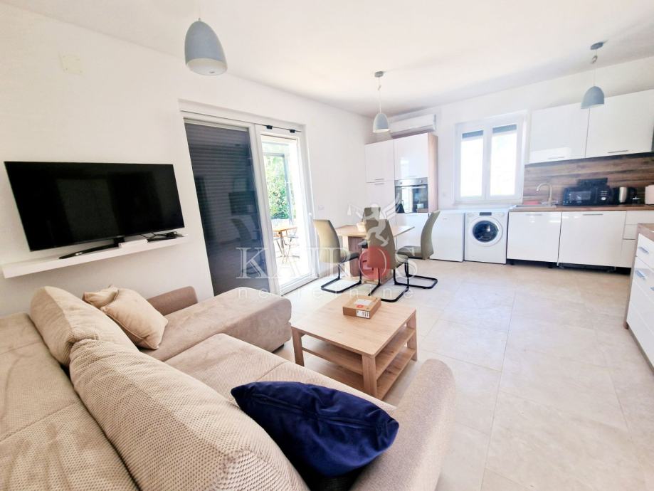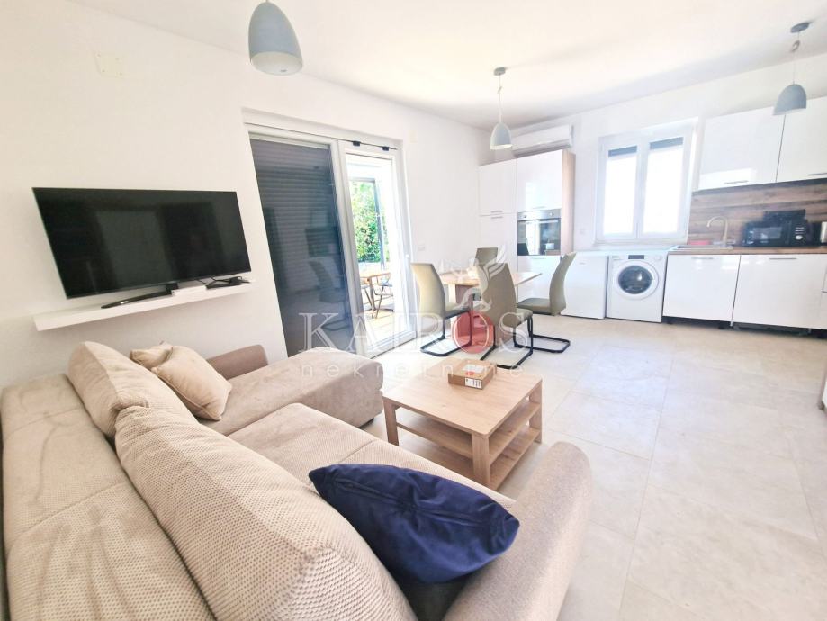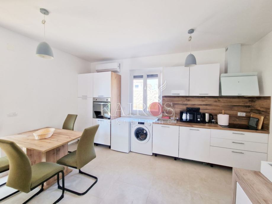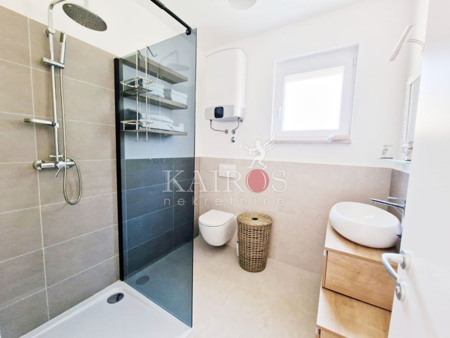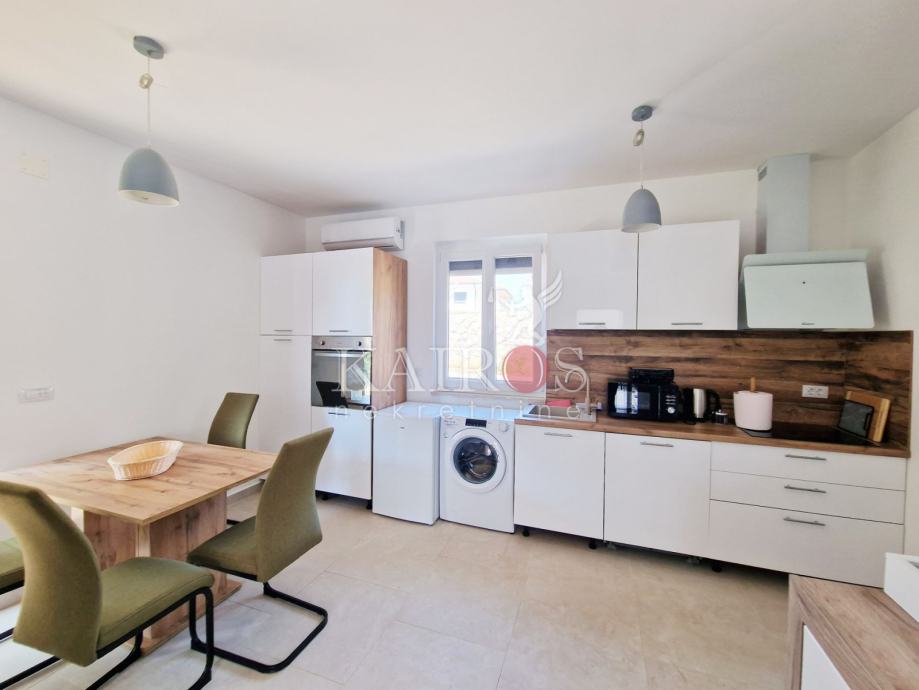 KOSTRENA, prodajemo dva stana: trosoban s dnevnim boravkom + jednosoban s dnevnim boravkom. Stan koji je trosoban s DB nalazi se u novijoj stambenoj zgradi, prizemlje (visina 1. kata), a na okućnici se nalazi drugi stan, kao zasebna stambena jedinica - jednosoban s dnevnim boravkom. Sve vrlo lijepo uređenoo.