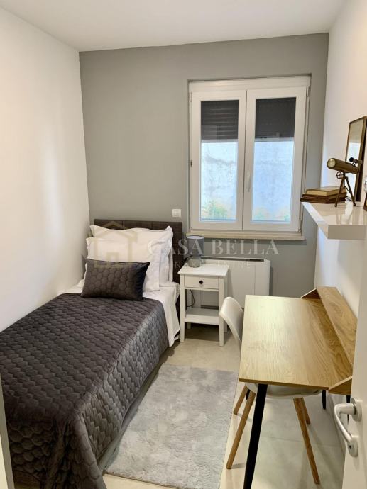 CASA BELLA iz ponude izdvaja novouređeni stan na atraktivnoj lokaciji u Kostreni, naselje Doričići, u blizini mora. Stan se sastoji od tri spavaće sobe, 2 kupaonice, dnevnog boravka sa kuhinjom i prekrasne terase opremljene vrtnim namještajem sa pogledom na more. Stanu pripada dio okućnice i jedno parkirno mjesto. Izuzetno mirna i tiha ulica, od prvih kostrenskih plaža udaljena cca 400m. Stan je novouređen i kvaliteno opremljen sa svime potrebnim za život te u njemu još nitko nije živio. Izuzetna prilika.