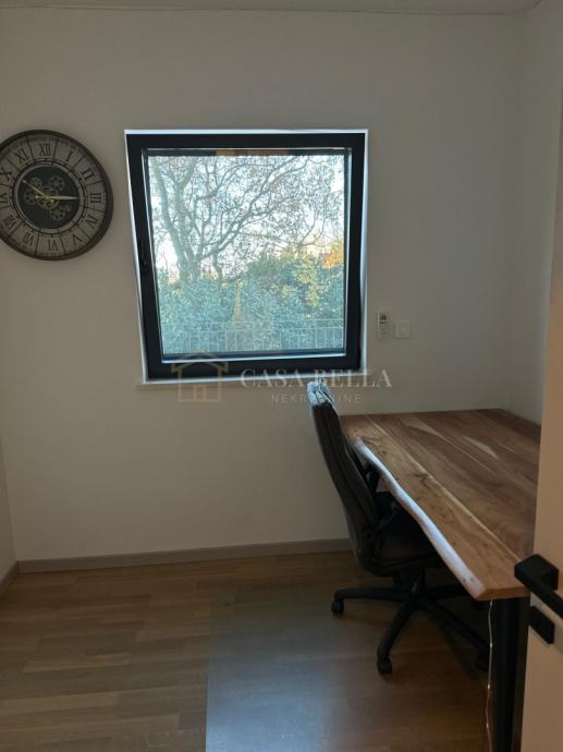 Stan se sastoji od dnevnog boravka sa blagovaonicom, velike terase, "master" spavaće sobe sa kupaonom, 2 sobe, radne sobe, malog wc-a i vešeraj-a.