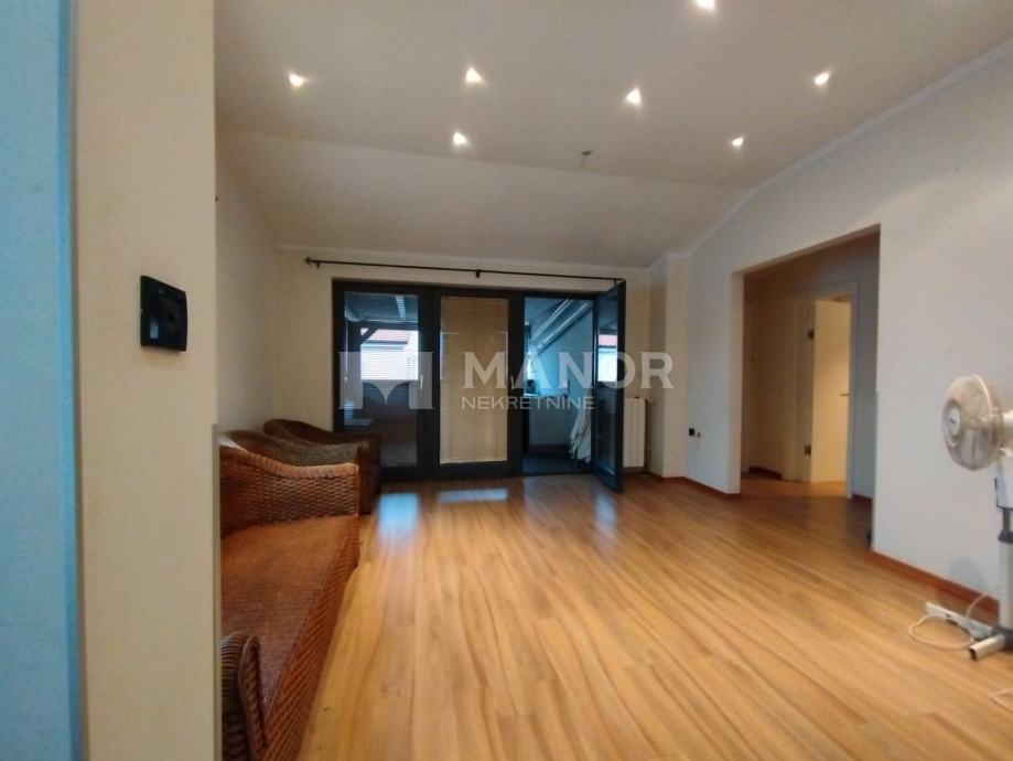 U prizemlju se nalazi 2S+DB stan s dodatnom, radnom sobom, kupaonicom i odvojenim toaletom.