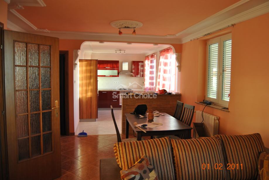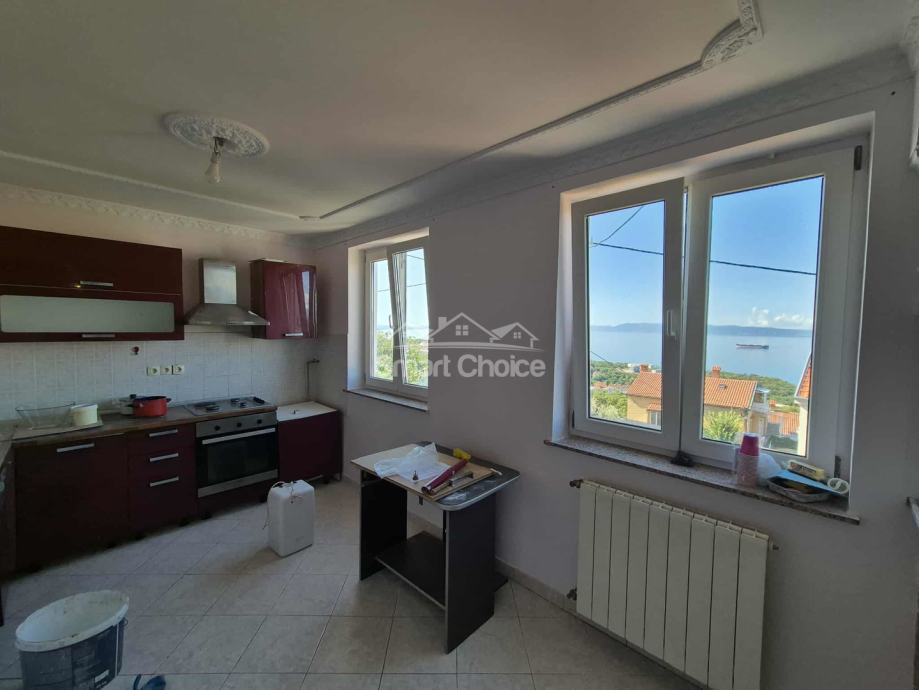 Kostrena - dvoetažni stan od 127 m2 koji se nalazi u kući sa samo dva stana. Sastoji se od četiri spavaće sobe, kuhinje, dnevnog boravka i tri sanitarna čvora. Ima odvojen ulaz i postoji mogućnost da se uz malo preuređivanja dobiju dva stana. Nalazi se na mirnoj i lijepoj lokaciji s prekrasnim pogledom na more. Stanu pripada ulazna terasa i spremište. Dokumentacija uredna. Prazno od ljudi i odmah useljivo.