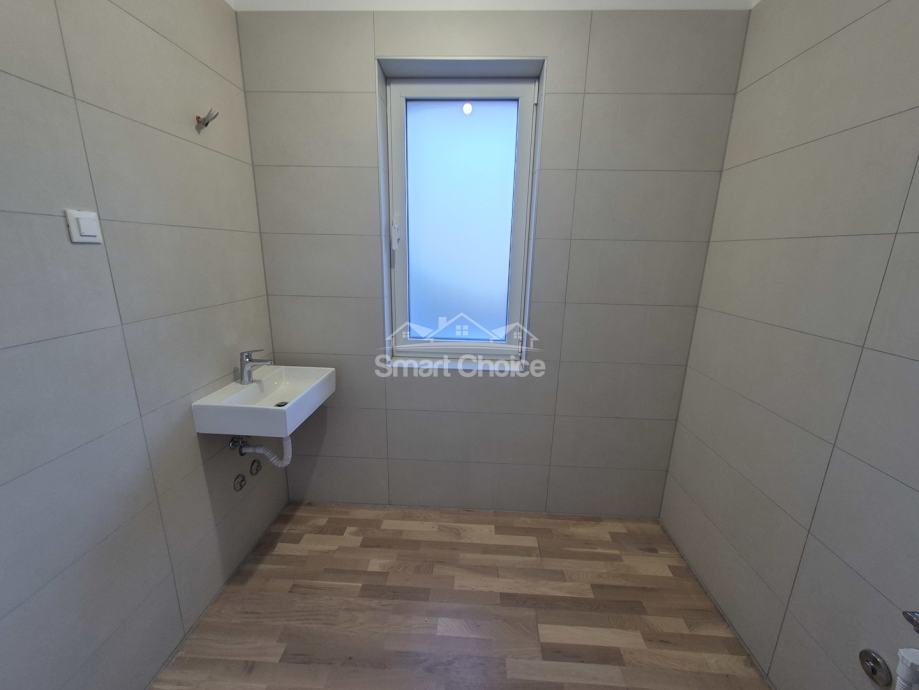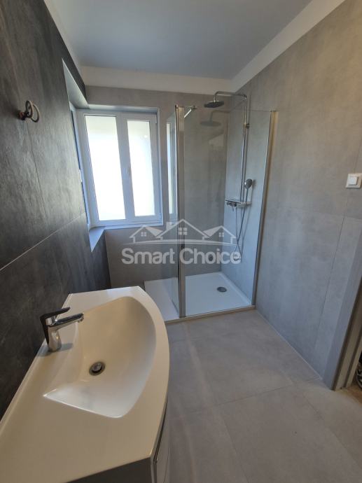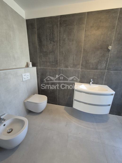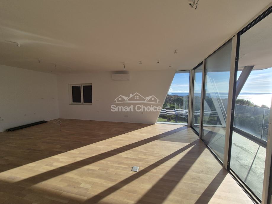 Kostrena - ekskluzivna etaža u novogradnji s natkrivenim parkirnim mjestom i vanjskim parkirnim mjestom. Stan se sastoji od prostranog dnevnog boravka s kuhinjom i blagovaonicom iz kojih je izlaz na veliku terasu od 13m2 s koje se pruža pogled na more, ostave, 3 kupaonice, 3 spavaće sobe, vešeraja i garderobe. Stanu pripada i spremište od 5m2. U stanu je podno grijanje na dizalicu topline i klime u svih prostorijama.