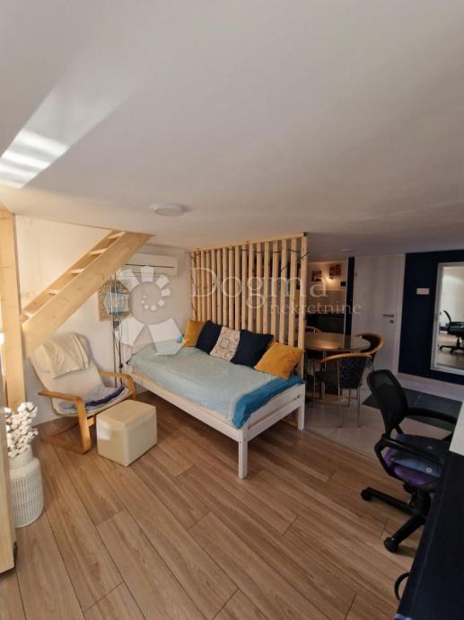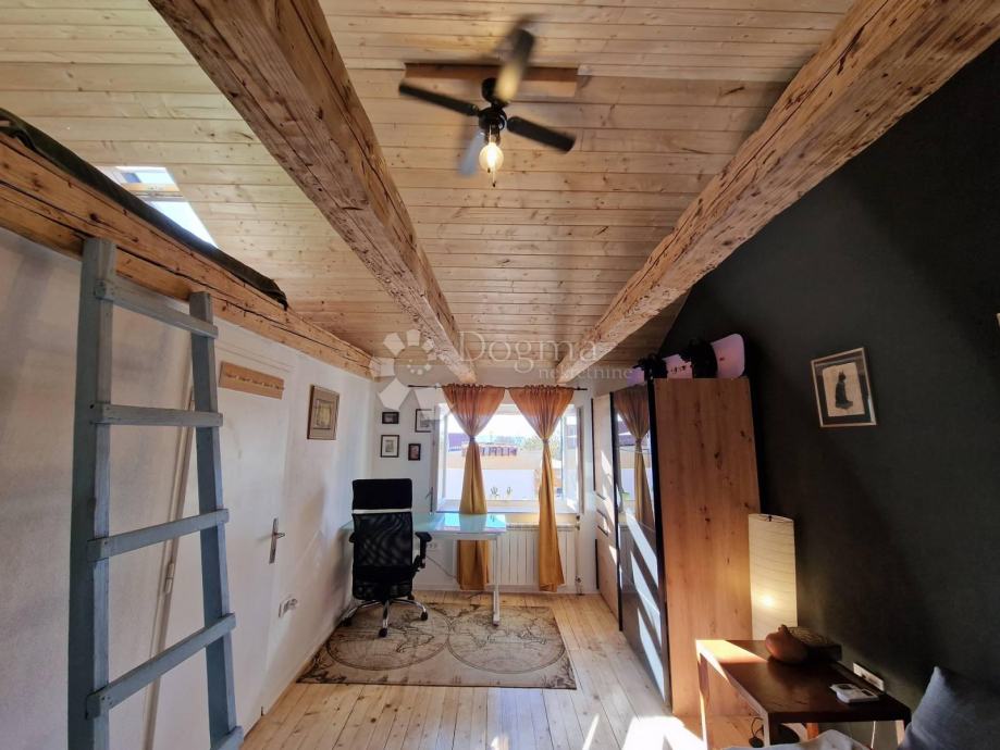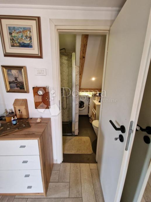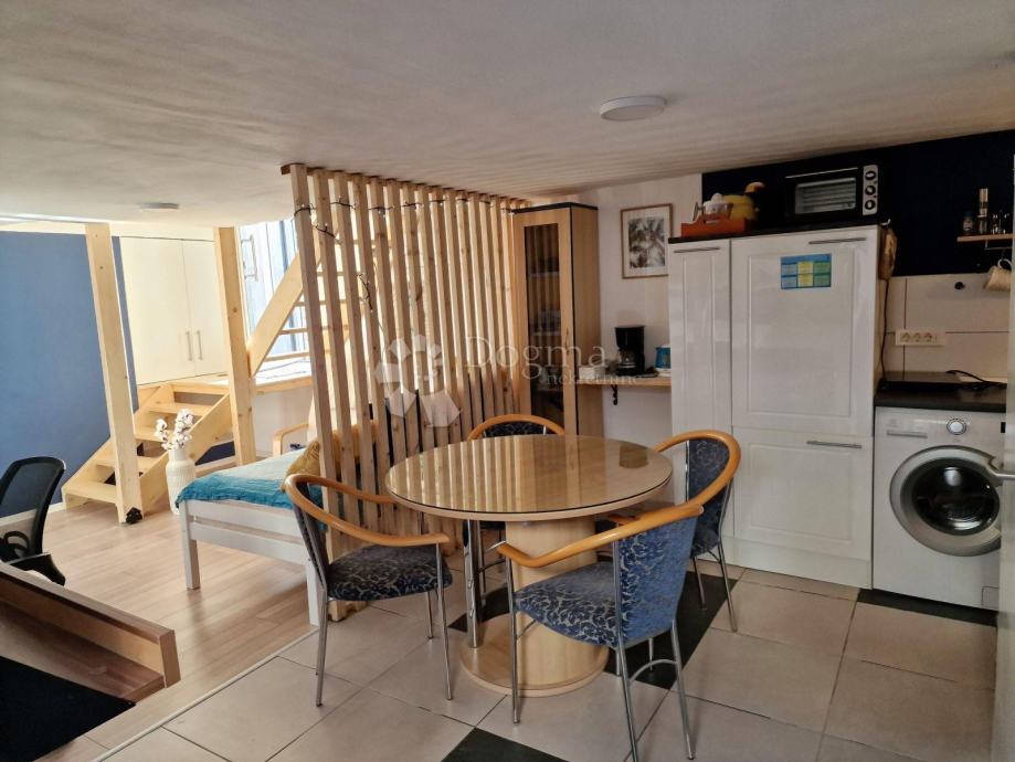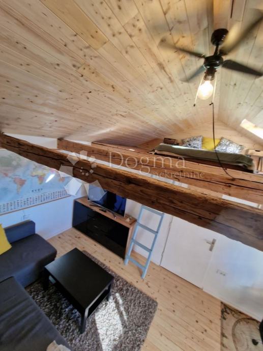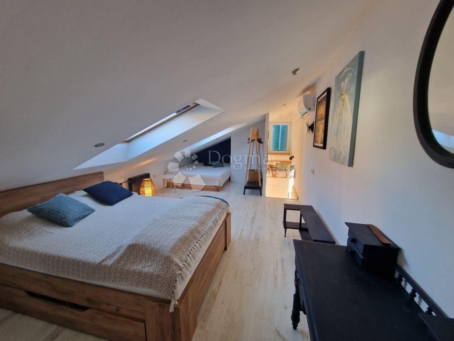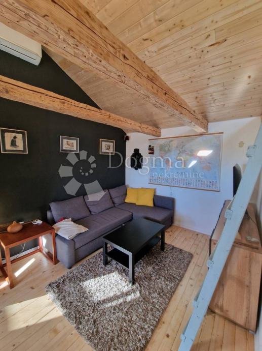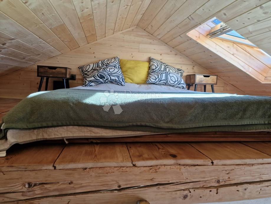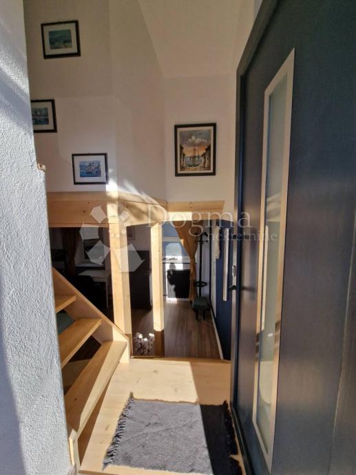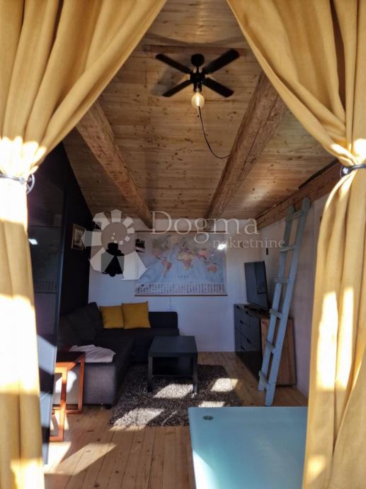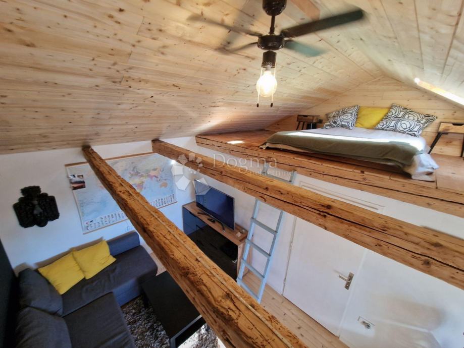 Prvi apartman je dvoetažni od 52m² u samostojećoj kućici nudi dnevni boravak, kuhinju i kupaonicu, te na katu prostranu spavaću sobu.