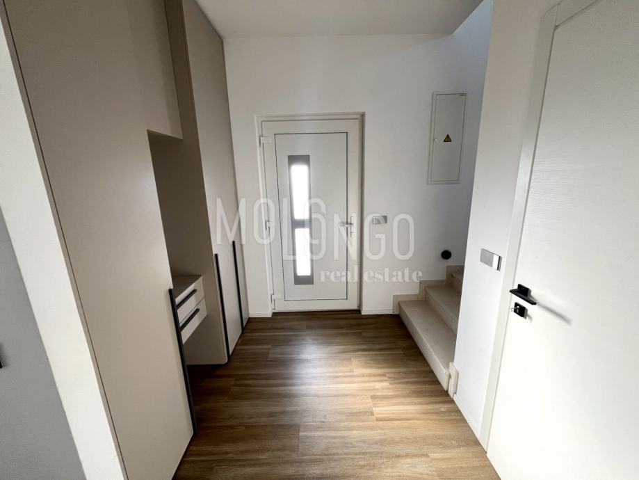 Sastoji se i od sporednih dijelova: ulaznog trijema, trijema i terase, garaže, 2 vanjska parkirna mjesta i bazena korisne površine 35m2.