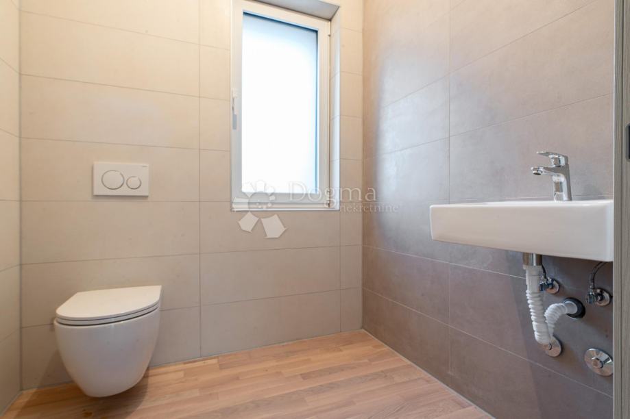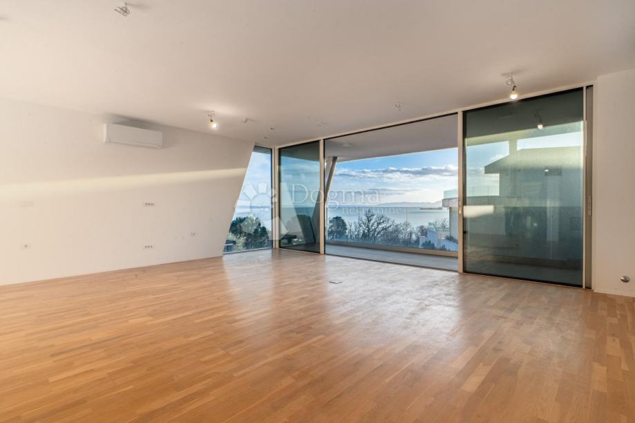 The apartment of 128 m² of usable area exudes luxury and modernity - a private elevator leads directly to the apartment, and the spacious open space living room with kitchen opens through impressive glass walls to a big balcony with a mesmerizing sea view. Three spacious bedrooms, two elegant bathrooms, two additional toilets and a special space for a walk-in closet make this property perfect for the most demanding tastes. Top-notch equipment includes underfloor heating via heat pumps, five air conditioners, electric shutters and video surveillance, while comfort and convenience are additionally ensured with a garage and outdoor parking space and a private storage room in the basement. This is not just an apartment - this is the ultimate combination of exclusivity, comfort and a prestigious location by the sea.