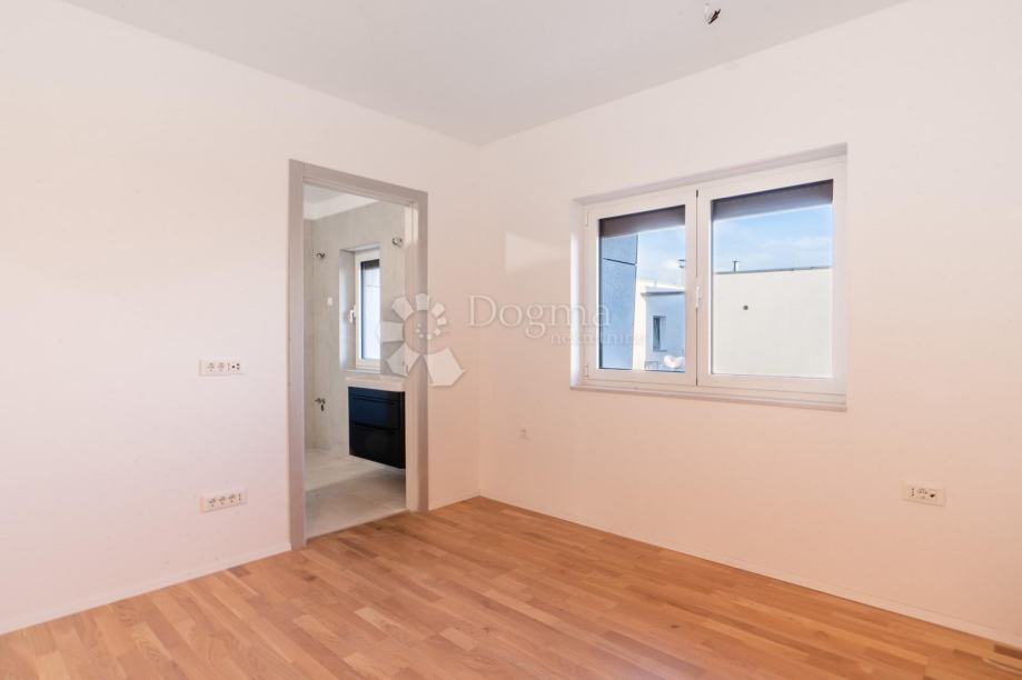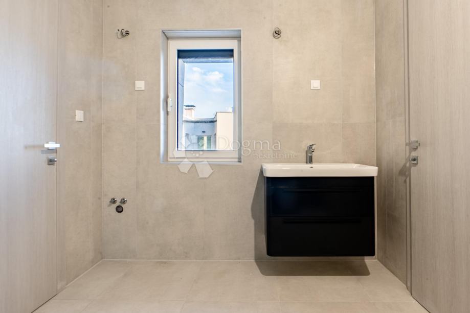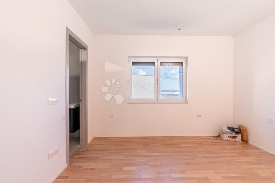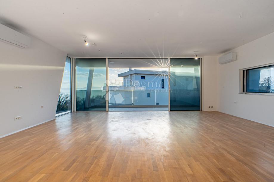 Stan od 128 m² korisne površine odiše luksuzom i modernošću – privatni lift vodi direktno do stana, a prostrani open space dnevni boravak s kuhinjom otvara se kroz impozantne staklene stijene prema velikom balkonu s očaravajućim pogledom na more. Tri prostrane spavaće sobe, dvije elegantne kupaonice, dva dodatna WC-a i poseban prostor za walk-in ormar čine ovu nekretninu savršenom za najzahtjevnije ukuse.