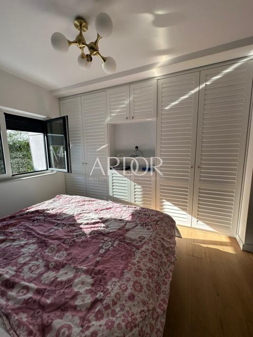 Stanu pripada bazen, koji je trenutno prekriven podnim oblogama, te prekrasan pogled na more, a dodatnu vrijednost donose vanjski sadržaji – terasa površine 20,90 m², natkrivena terasa od 14,30 m² te vrt veličine 22,00 m², idealan za opuštanje i druženje na otvorenom. Stanu pripadaju spremište u podrumu površine 4,59 m², garažno parkirno mjesto površine 19,91 m² te dodatno vanjsko parkirno mjesto od 12,50 m².