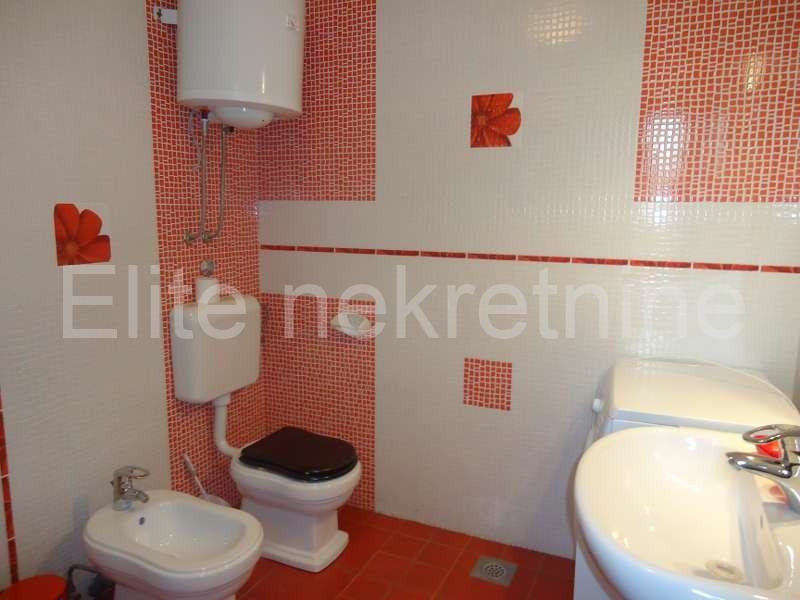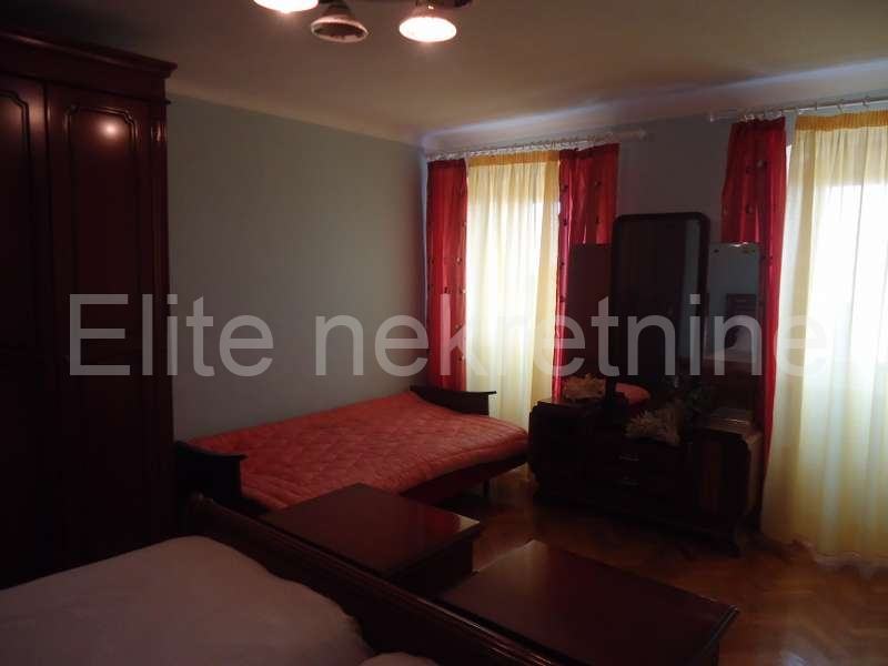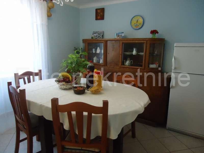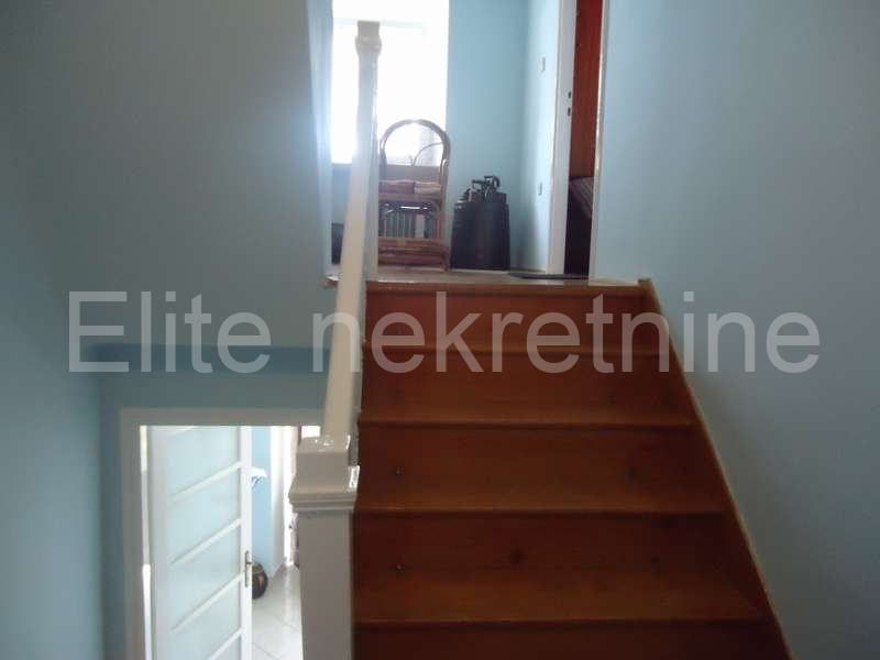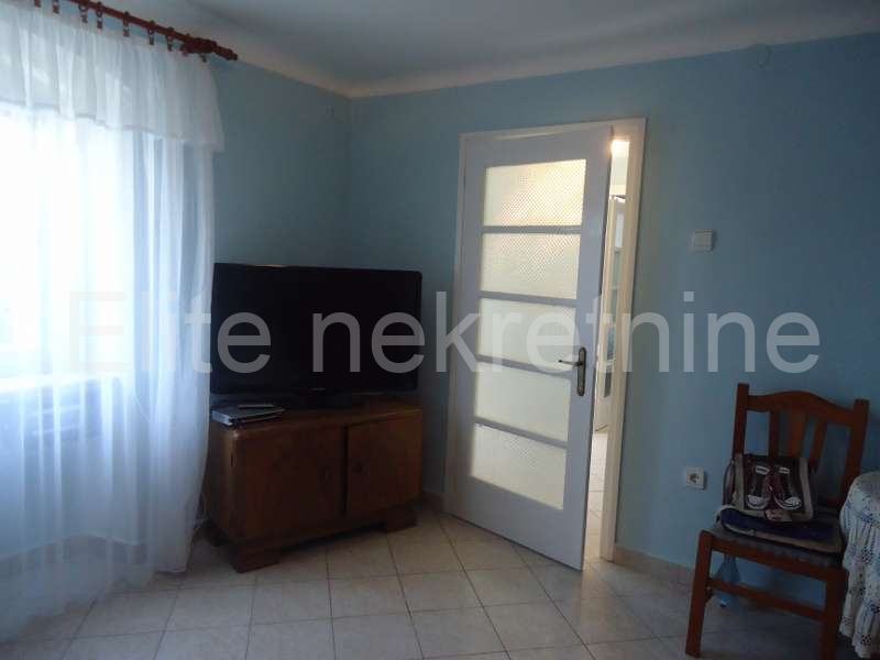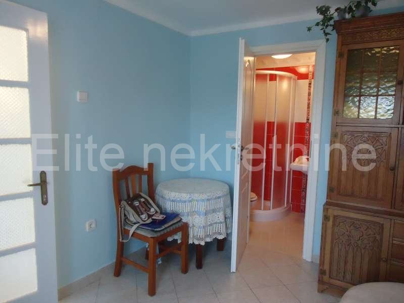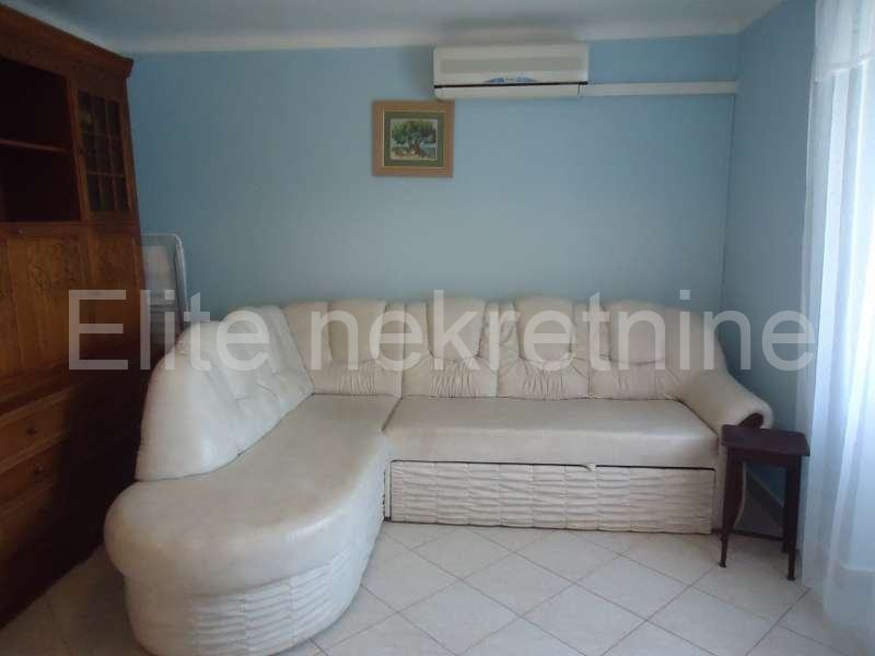 Na mirnoj lokaciji, u blizini mora i svih sadržaja, iznajmljuje se uredna i namještena kuća sa 2 etaže.Prostire se na 100 m2, a sastoji se od kuhinje, kupaonice, dnevnog boravka, 2 spavaće sobe, te joj pripada okućnica i osigurano parkirno mjesto. Prostrana okućnica nudi mnoštvo zelenila.