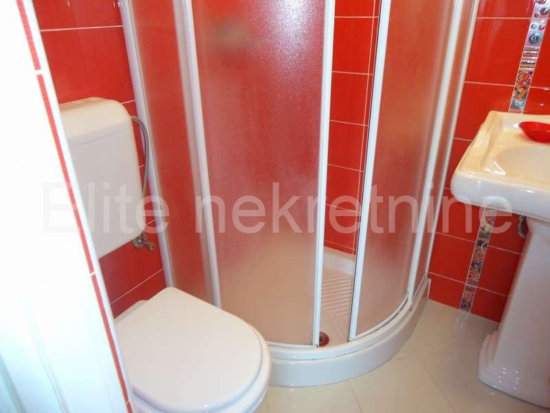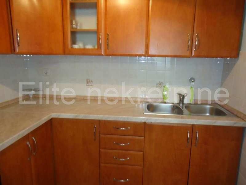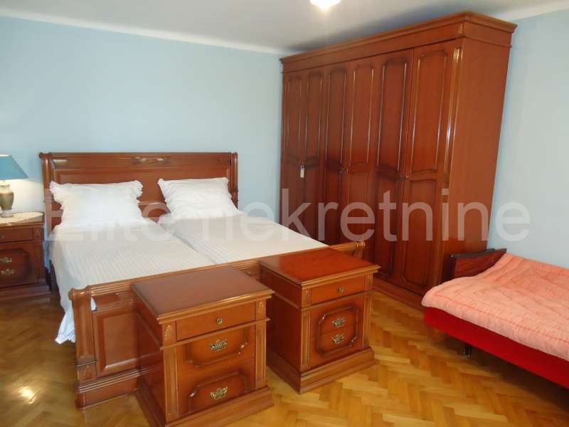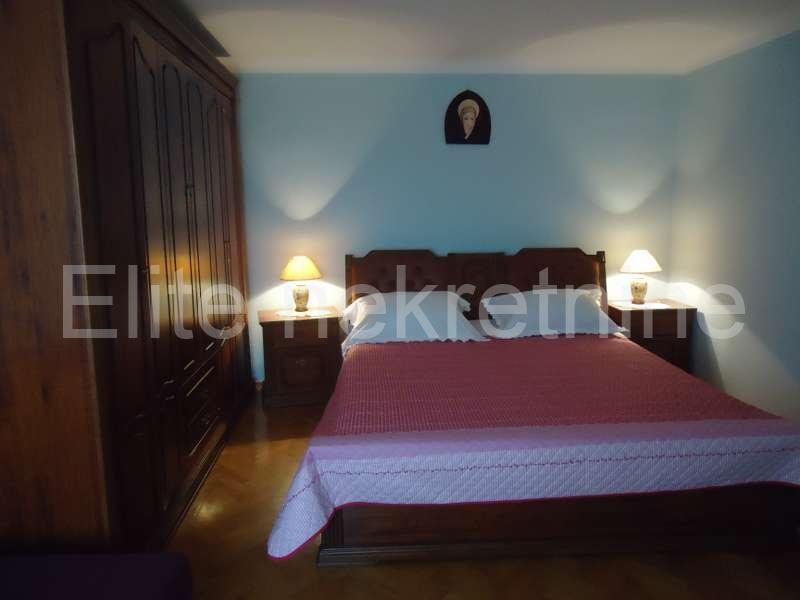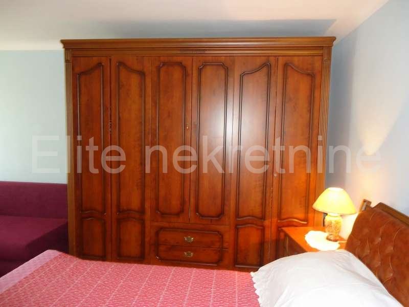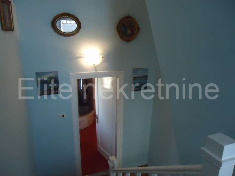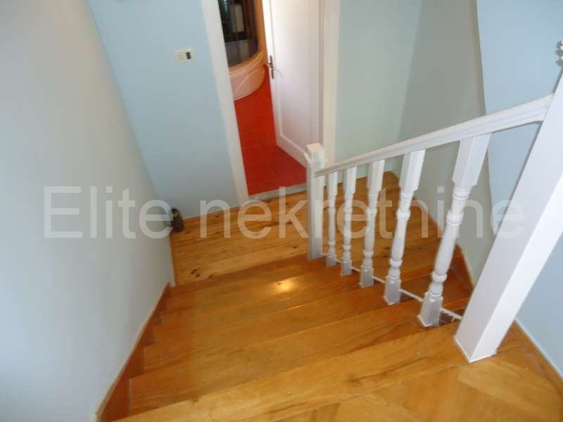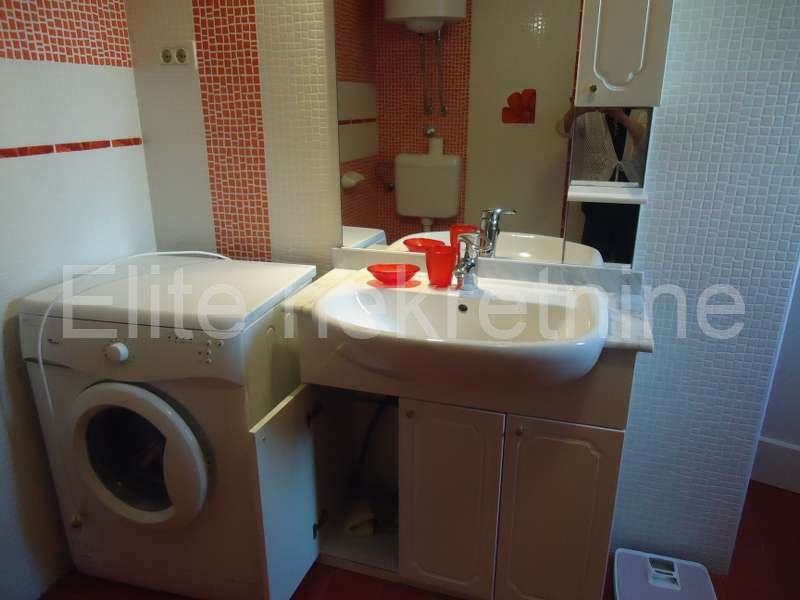 Na mirnoj lokaciji, u blizini mora i svih sadržaja, iznajmljuje se uredna i namještena kuća sa 2 etaže.Prostire se na 100 m2, a sastoji se od kuhinje, kupaonice, dnevnog boravka, 2 spavaće sobe, te joj pripada okućnica i osigurano parkirno mjesto. Prostrana okućnica nudi mnoštvo zelenila.