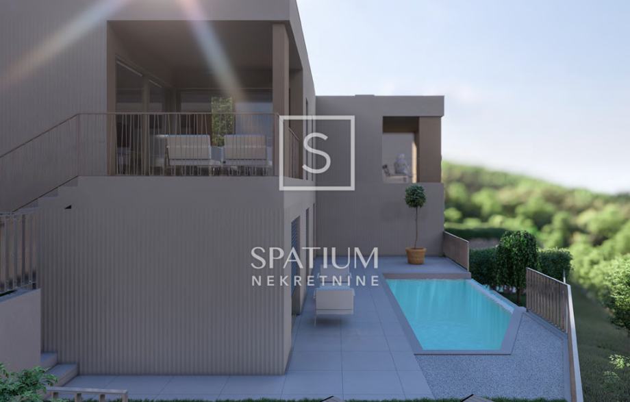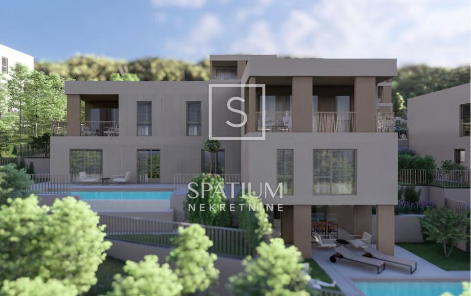 KOSTRENA, NOVOGRADNJA - TROETAŽNI OBITELJSKI STAN S BAZENOM (prodaja)