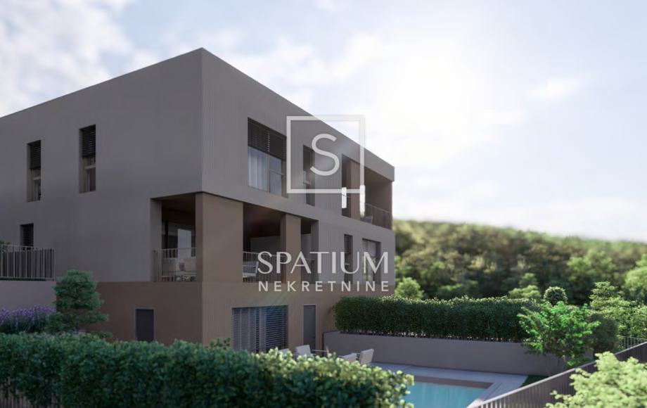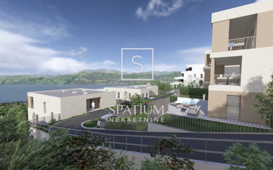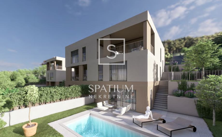 KOSTRENA, NOVOGRADNJA - TROETAŽNI OBITELJSKI STAN S BAZENOM (prodaja)