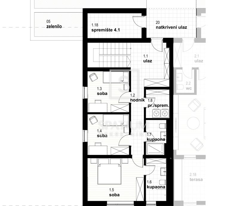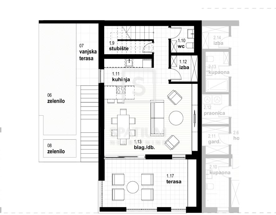 - dvije kupaonice, WC-a, vešeraja, konobe i spremišta