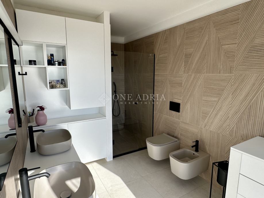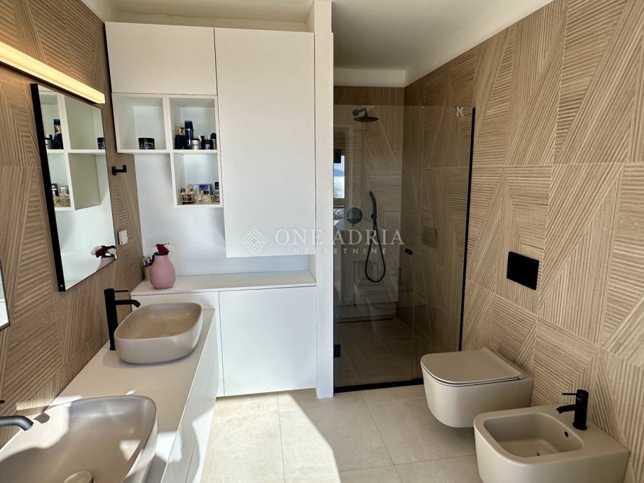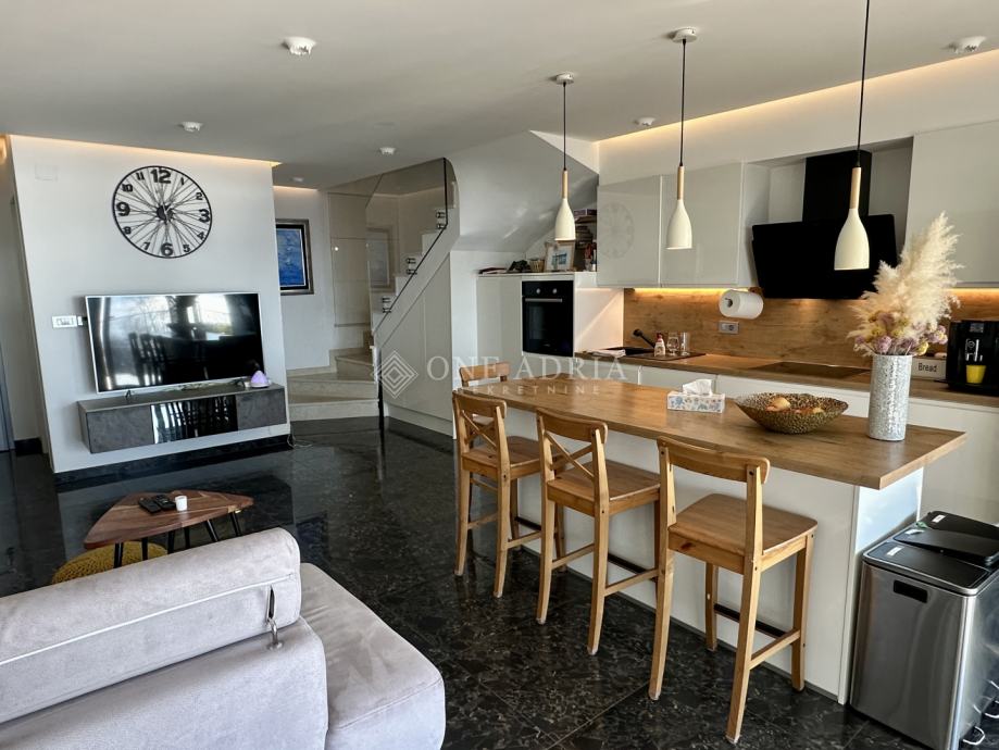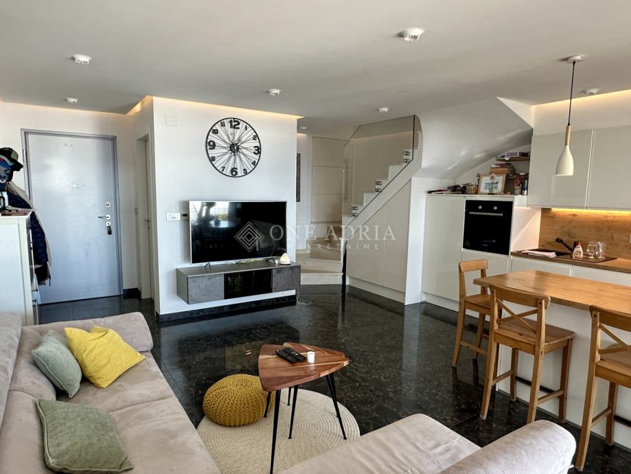 Na prodaju je moderan dvoetažni 3S+DB stan ukupne neto površine 95 m², smješten na atraktivnoj i mirnoj lokaciji u Kostreni.