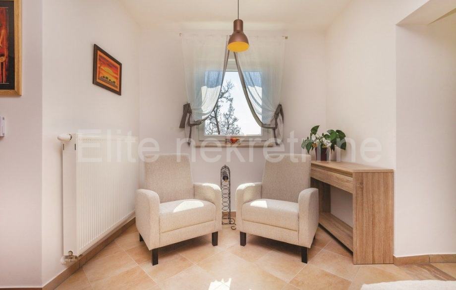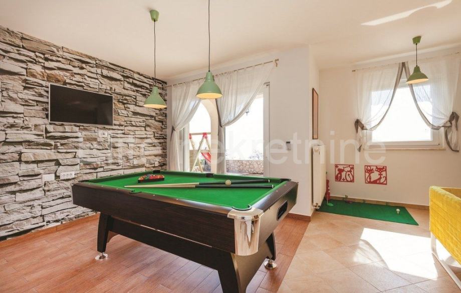 Kuća se sastoji od 6 spavaćih soba, kuhinje, dnevnog boravka sa blagovaonicom, 3 kupaonice i wc-a, te sadrži i bazen, kamin, 6 parkirnih mjesta i biljar i 3 terase!