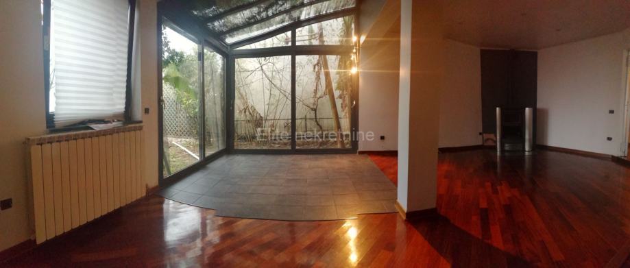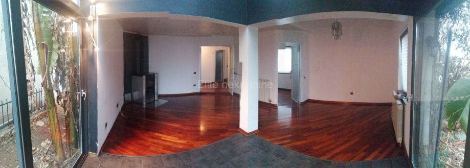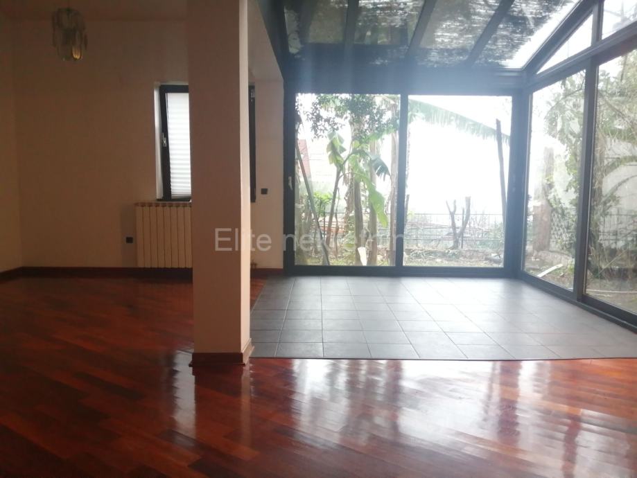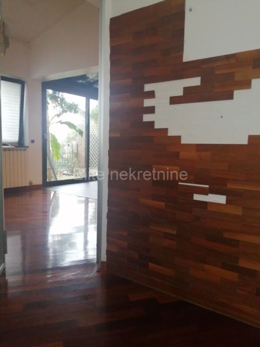 Posredujemo u prodaji prostrane, lijepe kuće na vrhunskoj lokaciji u Kostreni, okruženoj obiteljskim kućama, udaljenoj od mora i plaža svega 500-tinjak metara.Razvedena je na 2 etaže, gdje se na svakoj nalazi dvosobni stan sa dnevnim boravkom i zasebnim ulazom. Kompletno je adaptirana 2016.godine kada je provedeno centralno grijanje, postavljene nove podne podloge (egzotični parketi i keramika sa podnim grijanjem) te PVC stolarija. Na prizemlju se smjestio stan veličine 90.45 m2, sa ulaznim predprostorom, kuhinjom, dnevnim boravkom sa blagovaonicom i zimskim vrtom, 2 spavaće sobe, kupaonicom i toaletom. Prostrani dnevni boravak veličine 35 m2 nudi staklenu stijenu i kamin. Na prvom katu nalazi se stan veličine 70 m2 koji se sastoji od kuhinje, dnevnog boravka, hodnika, 3 sobe, kupaonice te toaleta. Iz dnevnog boravka se izlazi na terasu od 15 m2 na kojoj se smjestila ljetna kuhinja. Nekretnina sa oba kata nudi prekrasan pogled na more, te zbog svoje jugoistočne orijentacije osunčana je i topla tokom cijelog dana.¨Poseban ugođaj daje zatvorena veranda u staklu okružena raznim drvećem. Ispred kuće smjestila se velika terasa od 40 m2 te mali vrt.Kuća sa puno potencijala, vrijedna svake pažnje!