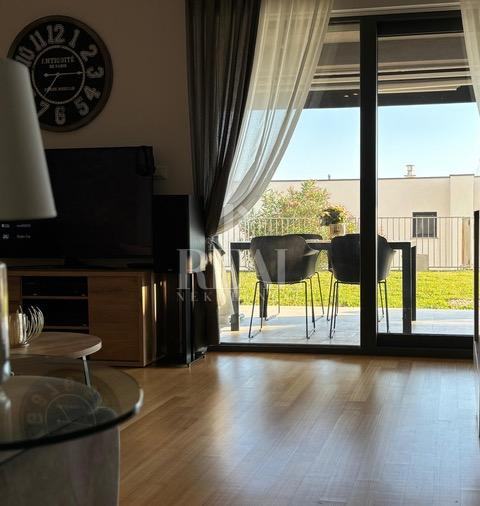Stan ne iziskuje nikakva ulaganja, a od opreme valja istaknuti Schuco vanjsku stolariju u antracit boji s roletama na struju, podno grijanje u svim prostorijama,