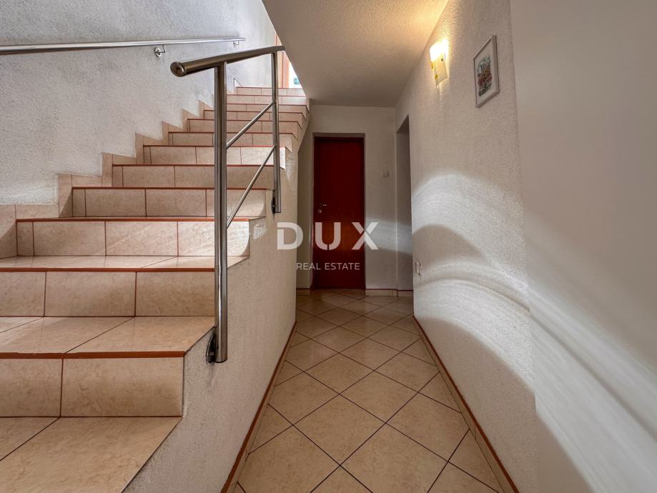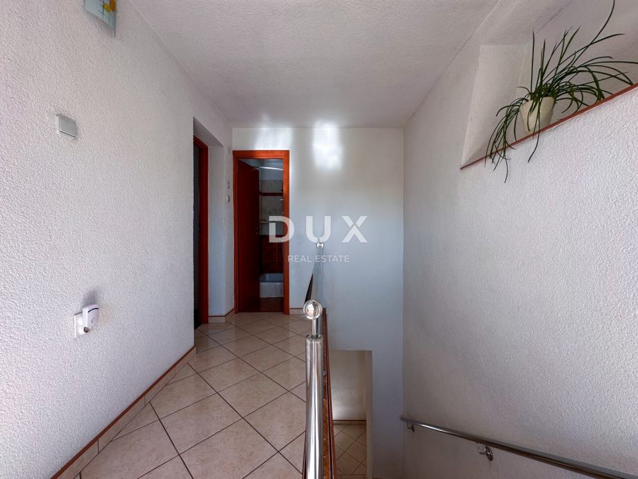 Prostire se na dvije etaže – prizemlje i kat – s izvrsnim rasporedom prostorija. U prizemlju se nalaze tri komforne i prostrane spavaće sobe koje pružaju udobnost i privatnost, kupaonica, hodnik te praktična ostava. Unutarnje stepenište vodi na kat gdje se smjestio svijetao dnevni boravak povezan s kuhinjom i blagovaonicom, dodatna kupaonica te hodnik. Poseban šarm ovom prostoru daje predivna mala lođa, savršena za opuštanje uz jutarnju kavu.