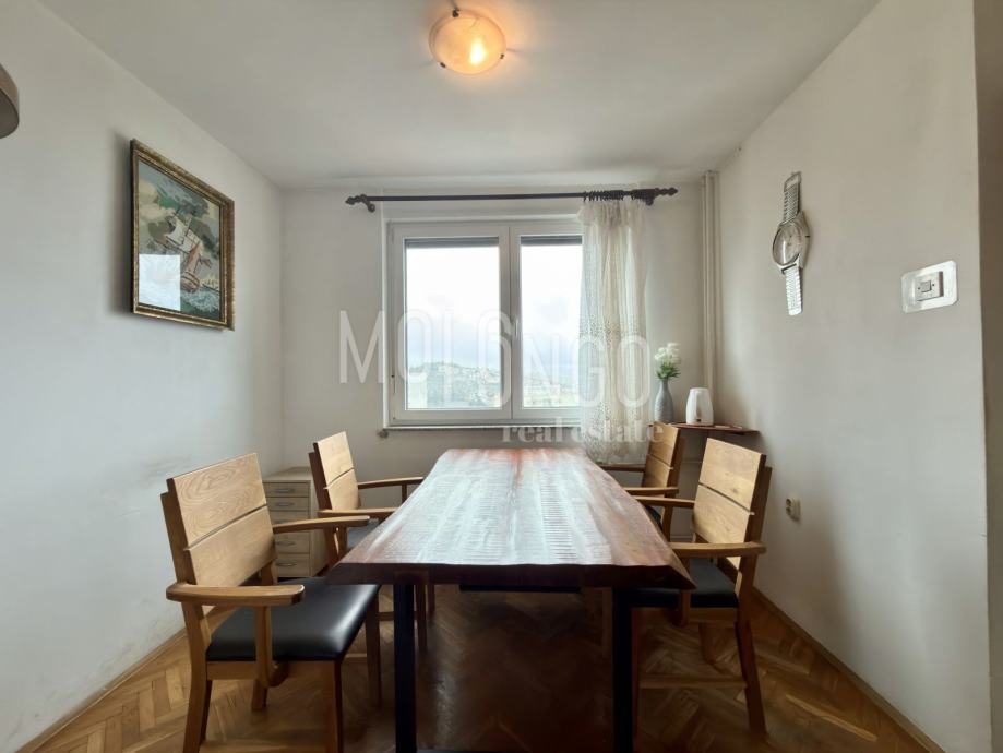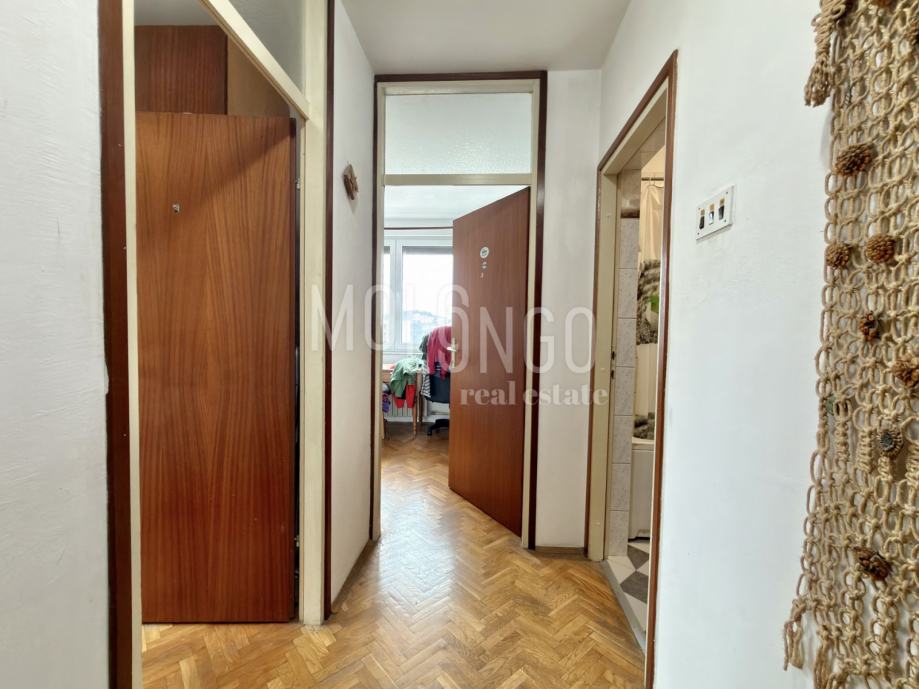 U ponudi komforan stan u neposrednoj blizini centra grada, a sastoji se od dnevnog boravka, kuhinje, ostave, hodnika, zatvorene loggie, dvije spavace sobe, wc-a i kupaonice ukupne povrsine 80m2.