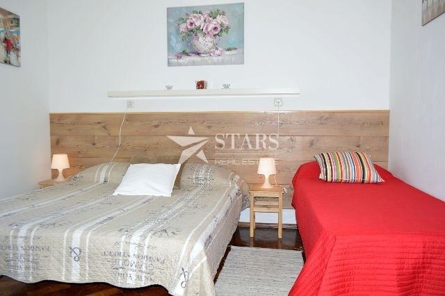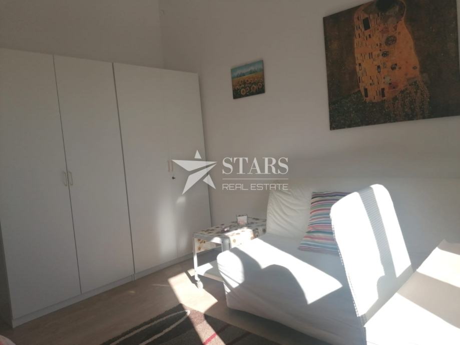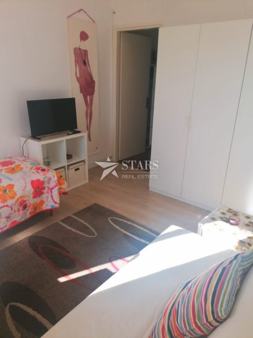 Stan ima dvije velike spavaće sobe, od kojih jedna ima veliki walk-in ormar, kupaonicu, te kuhinju s blagovaonicom u sklopu koje je i manji dnevni boravak. Iz kuhinje izlaz je na balkon. Prostor unutar stana vrlo je dobro iskorišten. Za grijanje se koristi klima, no u stanu je i dimnjak za one koji preferiraju klasičniji način grijanja.