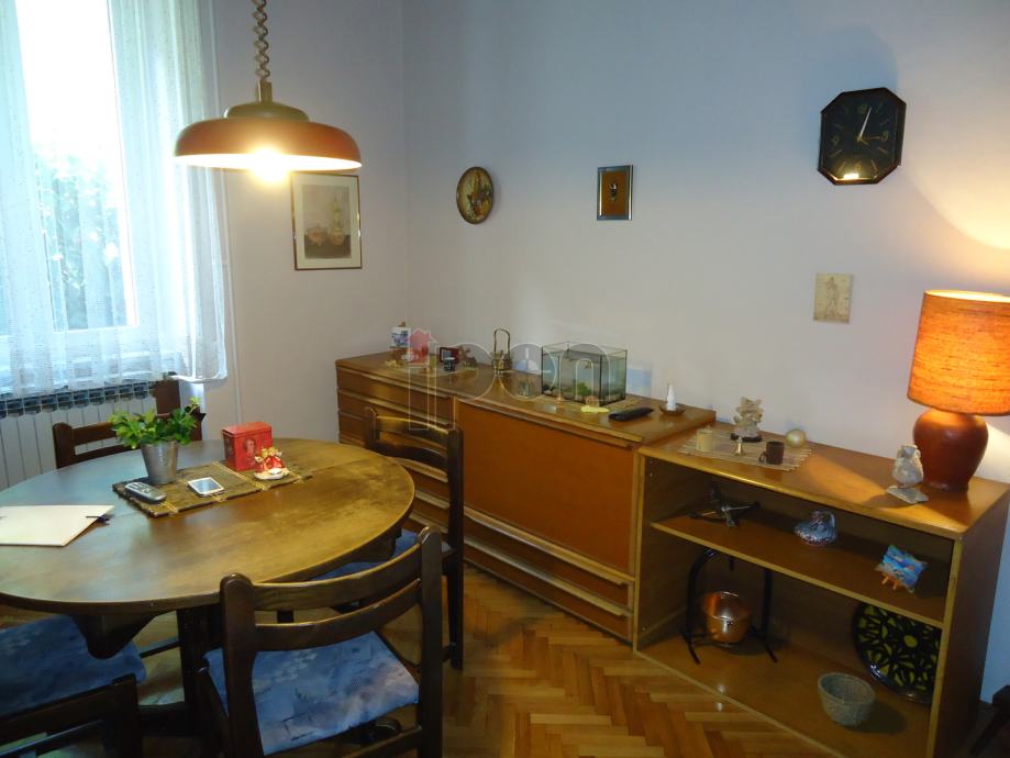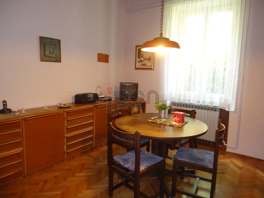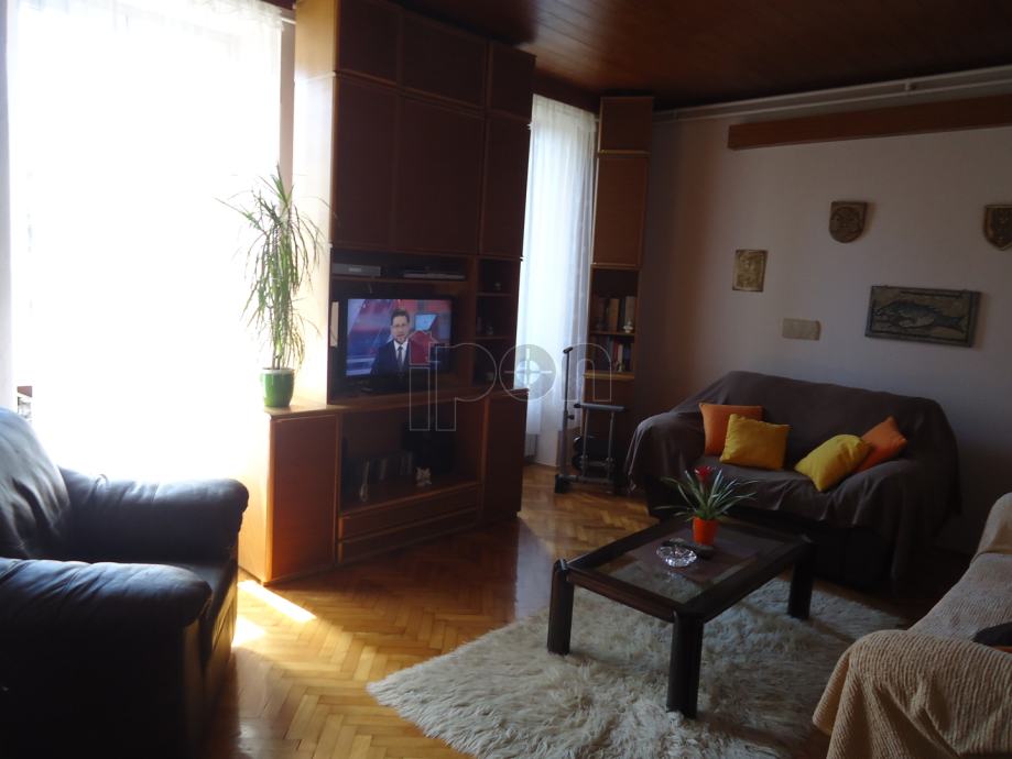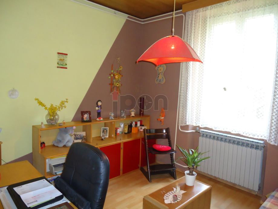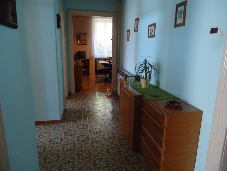 Stan na prvom katu sastoji se od dva hodnika, blagovaonice, dnevni boravak, četri sobe, kupaonica sa Wc, Wc, ostava i balkon, površine 114,20 m2, sa pripadajućim vanjskim stepeništem površine 6,84 m2, kao i podrum površine 11,27 m2 i tavan površine 21,08 m2 što sveukupno čini 153,39 m2. Grijanje ove etaže je na kaljevu peć i putem klima uređaja.