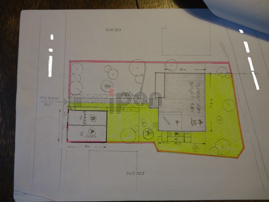 Dvije garaže svaka po 20m2 i vrlo lijepa okućnica koja je podijeljena po stanovima.