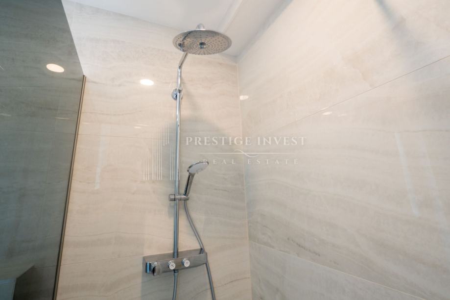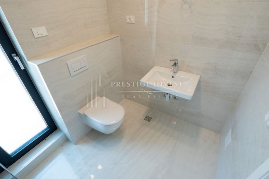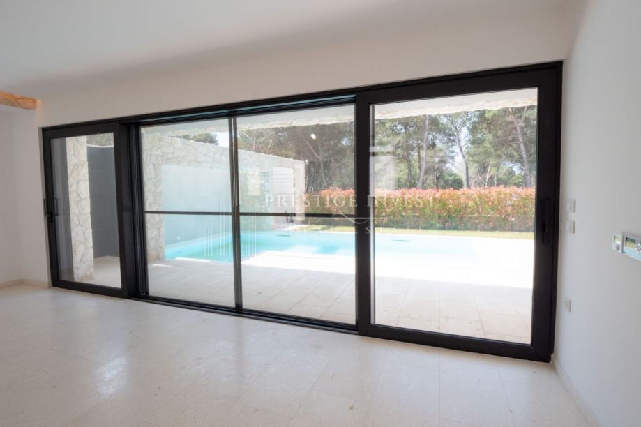 Visokokvalitetne kamene pločice od lokalnog bijelog kamena, visokokvalitetne unutarnje i podne pločice ili Hansgrohe kupaonska oprema. Dovratnici unutarnjih vrata su visine 2,3 m, krila robne marke Lignor su kvalitetnije, nefalcirana okova.