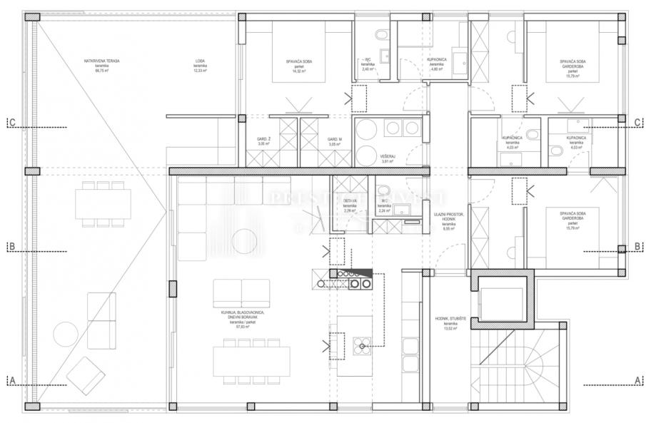 Ukupna površina s natkrivenom terasom: 234,77 m2