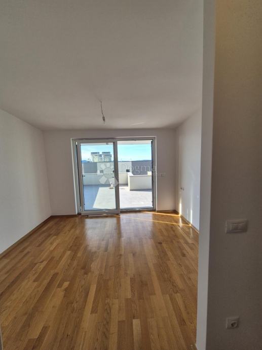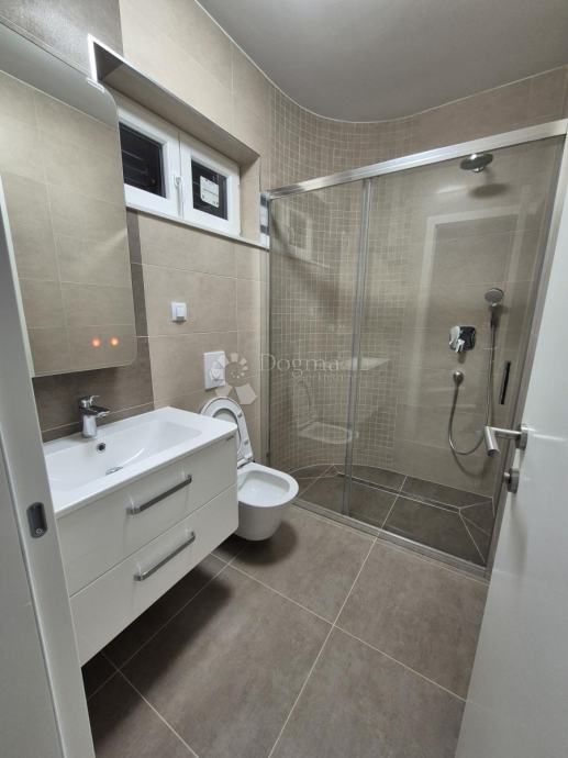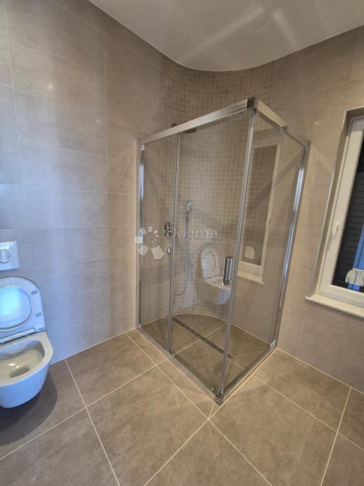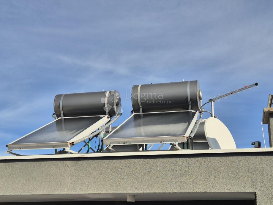Penthouse - dvoetažni stan koji se sastoji od ulaznog prostora, blagovaonice, kuhinje, balkona, dnevnog boravka, kupaonice i prostora stepenica na 1 katu te na 2 katu degažmana, tri spavaće sobe, dvije kupaonice i terase sa prekrasnim pogledom na more koje je udaljeno svega 20 metara.