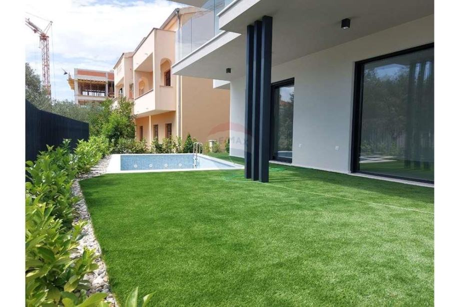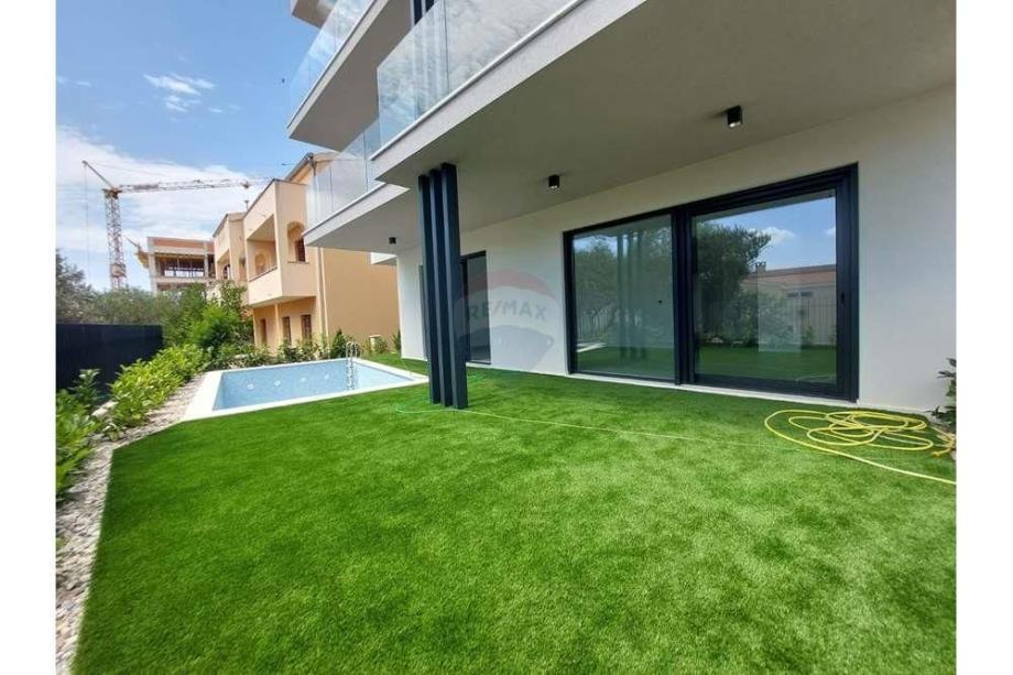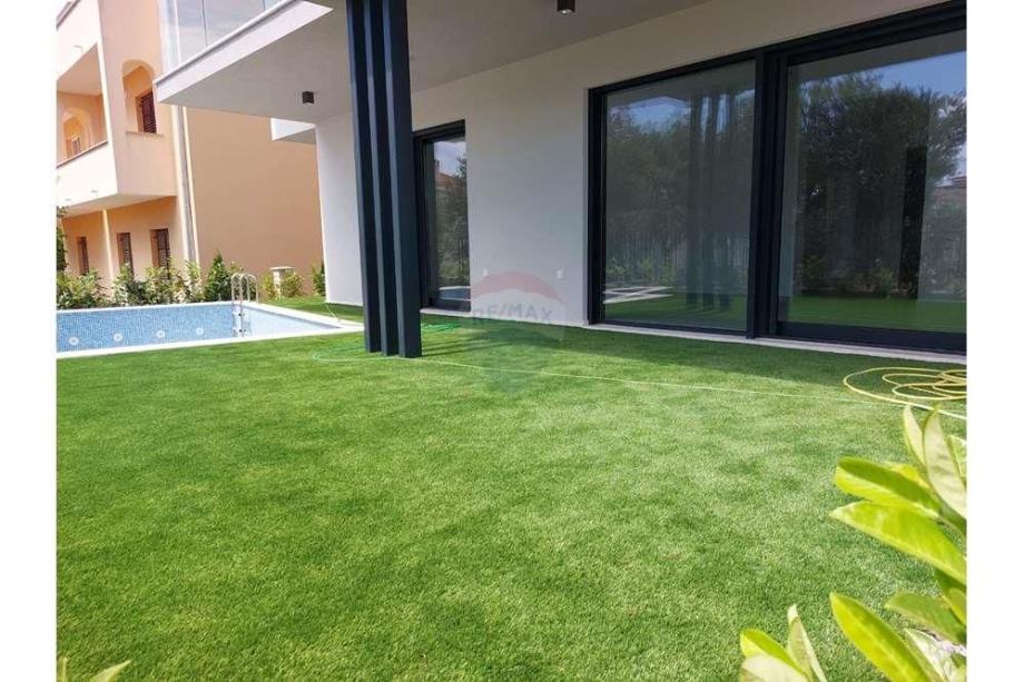 Posebna karakteristika ovog stana je prostrani vrt površine 105,71 m², koji uključuje bazen ispred terase površine 17,28 m². Ovaj vanjski prostor nudi izvanredne mogućnosti za opuštanje, rekreaciju i druženje na otvorenom, pružajući osjećaj privatnosti i luksuza.