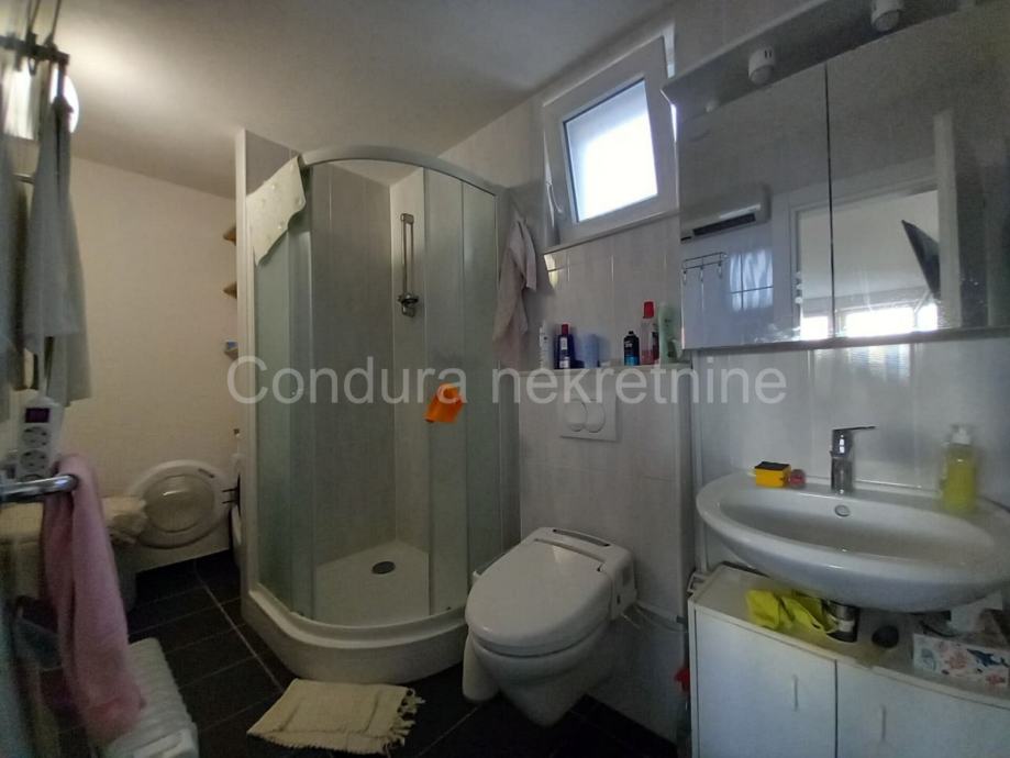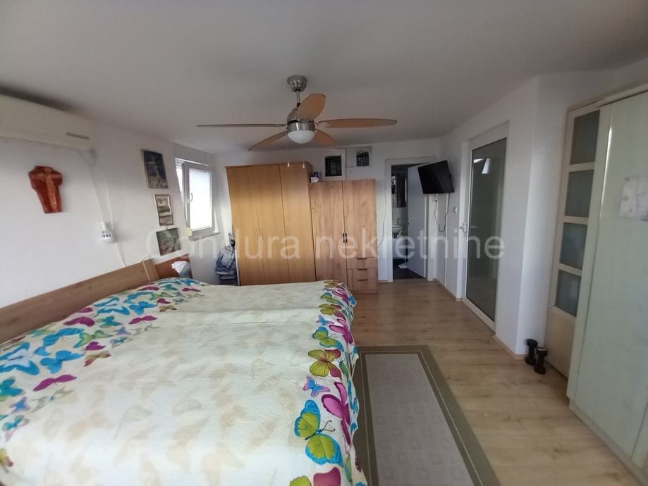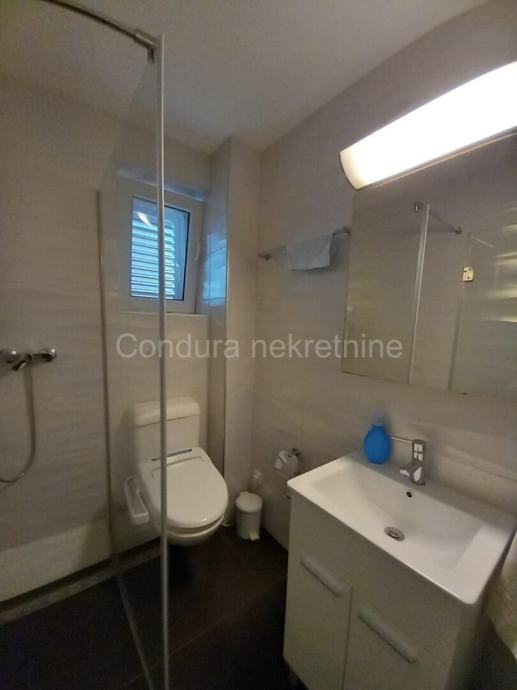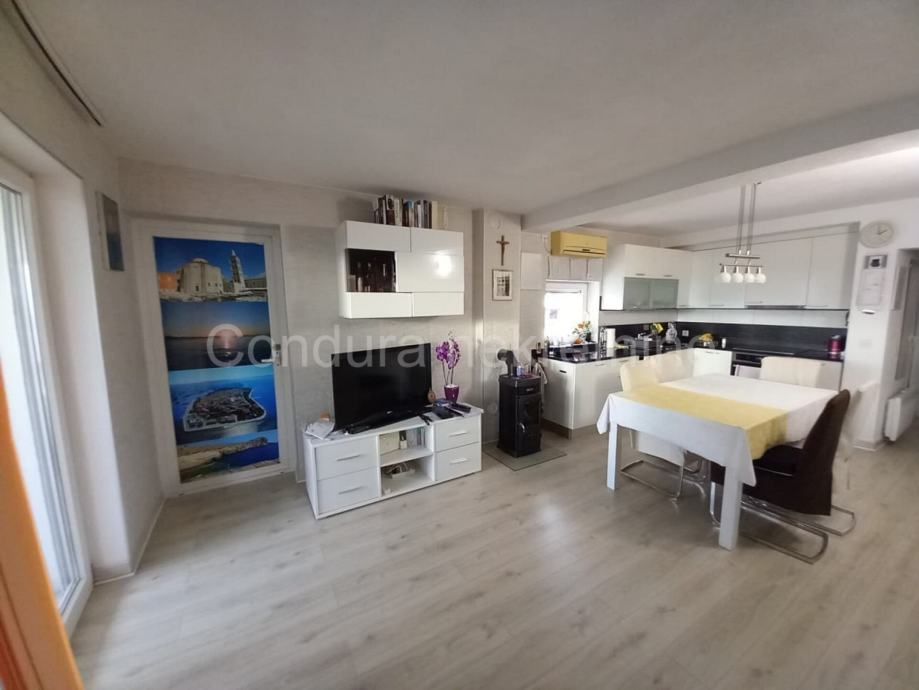 Prodaje se lijepo uređen i vrlo ugodan stan površine 74,57 m², smješten na prvom katu kuće, u mirnom okruženju. Stan se ističe odličnim rasporedom, pogledom na more te vlastitim liftom koji je dio stana, što pruža dodatnu praktičnost i privatnost.