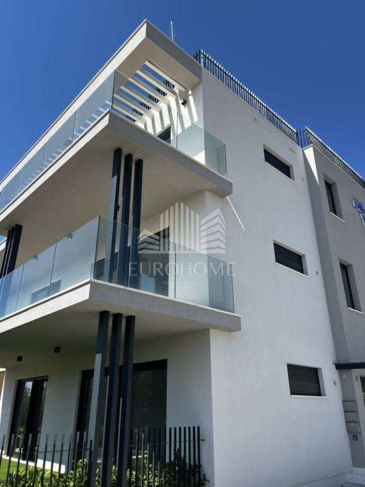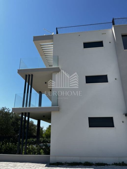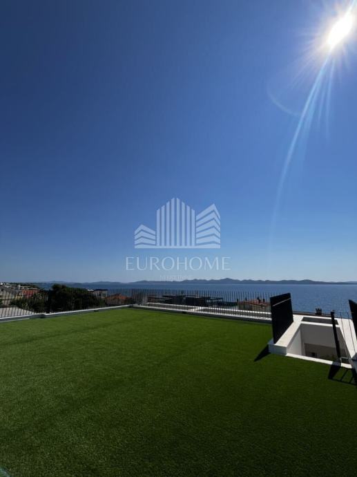 Na vrhu moderne urbane vile s ukupno tri stambene jedinice, smjestio se ekskluzivni penthouse P3. Riječ je o prostranom i elegantno dizajniranom stanu neto površine 124,58 m², smještenom na drugom katu, s južnom orijentacijom i izvanrednim pogledom na more i zadarski arhipelag.