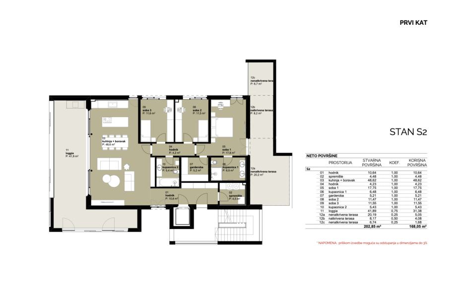 Tuškanac-Kraljevec, novogradnja, luksuzan četverosoban stan na 1. katu zatvorene površine 126 m2 s loggiom 42 m2 (NKP 31,40 m2), natkrivenom terasom 8,20 m2 (NKP 4,10), nenatkrivenom terasom 20,20 m2 (NKP 5,05 m2), nenatkrivenom terasom 6,70 m2 (NKP 1,65 m2), garažnim mjestom 19 m2 (NKP 14,33...