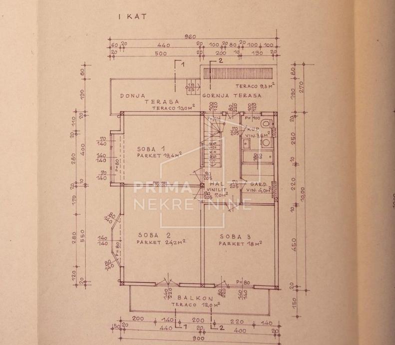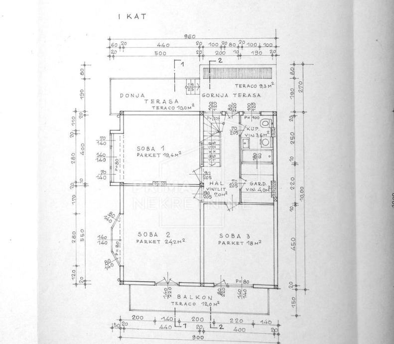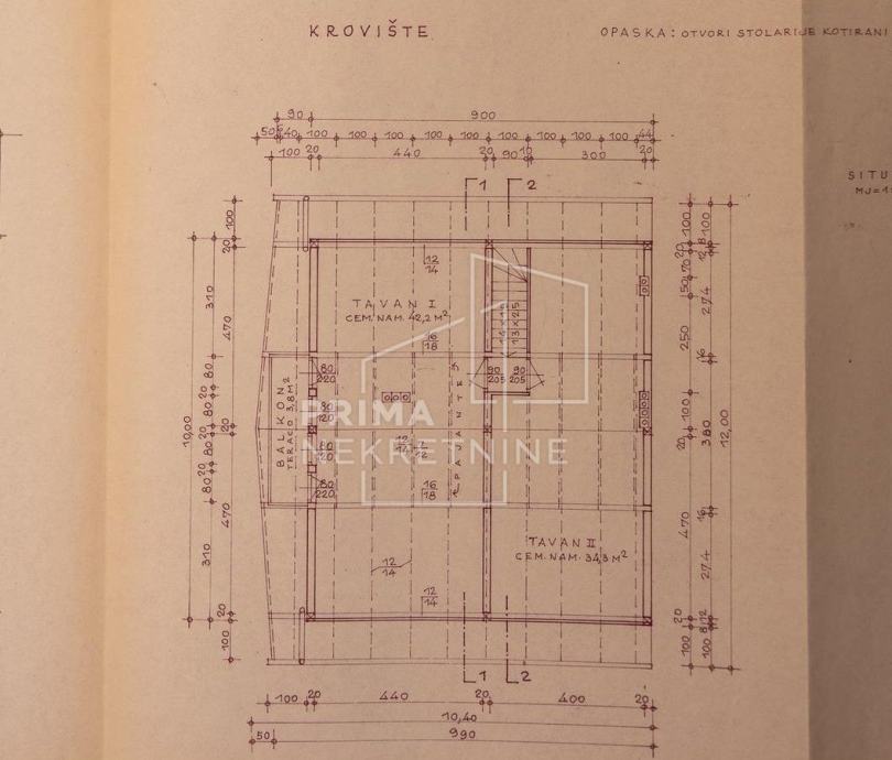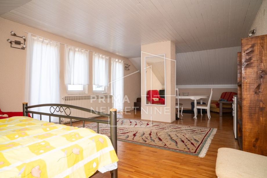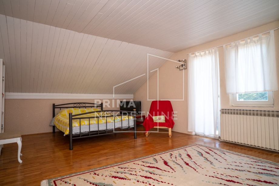 Potkrovlje: kuhinja s blagovaonicom, dvije sobe, kupaonica i balkon.