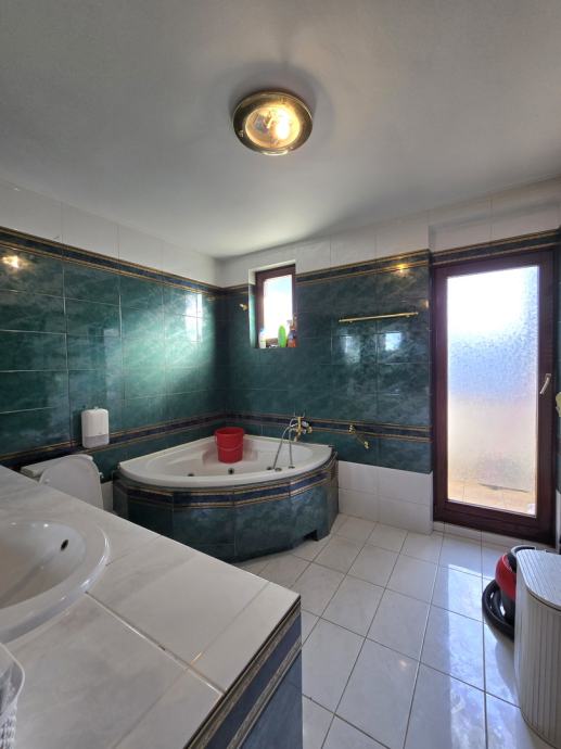 Prva etaža u visokom prizemlju sastoji se od boravka, izbe, toaleta, kuhinje s blagovaonom i dva balkona.