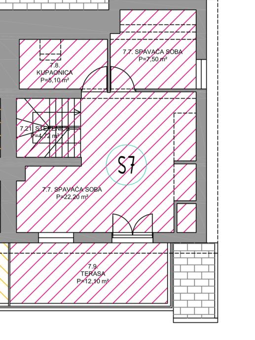 Treća etaža sastoji se od kupaonice, dvije spavaće sobe i terase.