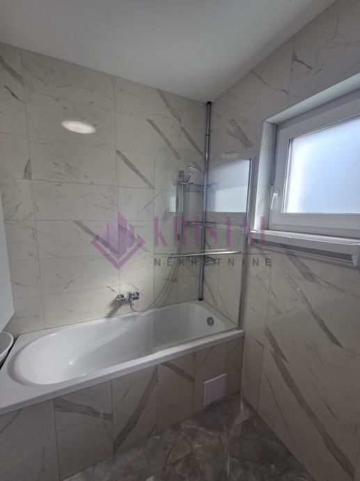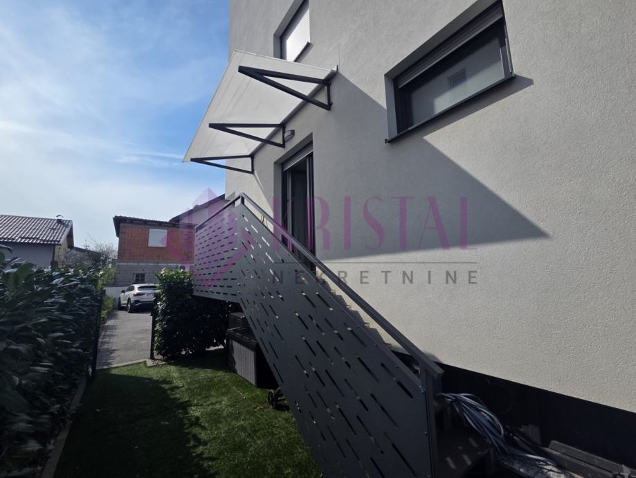 Iznajmljuje se moderan, potpuno uređen i namješten 3-soban stan ukupne površine 60 m2 (stambena površina 52 m2), smješten u visokom prizemlju uredne i mirne stambene zgrade u Kraljevečkim Novakima. Zgrada je izgrađena 2021.g.