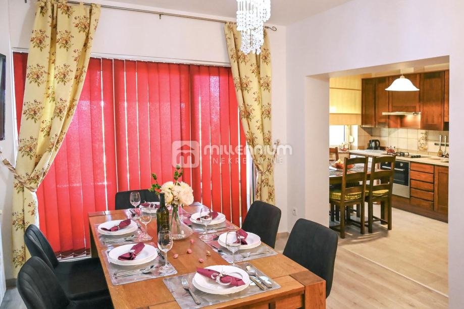 Kuća se sastoji od dva prostrana stana te zajedničkih sadržaja koji pružaju vrhunski ugođaj boravka. Prodaje se kompletno namještena i opremljena, uz korištenje vrhunskih materijala i modernih rješenja, a u potpunosti je uređena 2022. godine.