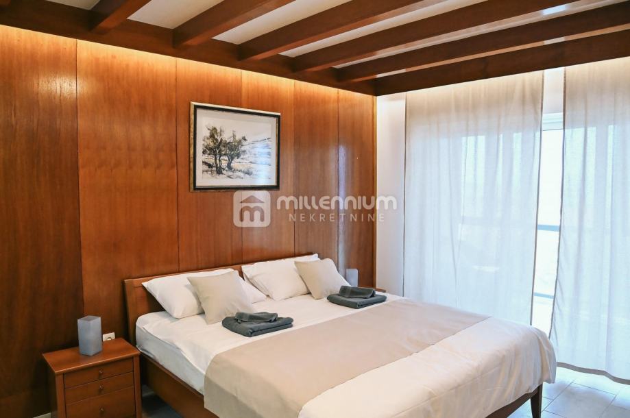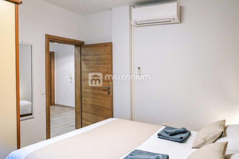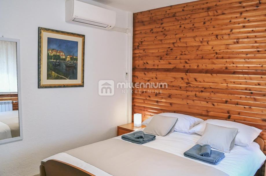I na drugom katu je trosobni stan s dnevnim boravkom i ostakljenim balkonom. Svaka soba ima vlastitu kupaonicu, što ovu nekretninu čini idealnom za veći broj korisnika ili turistički najam.