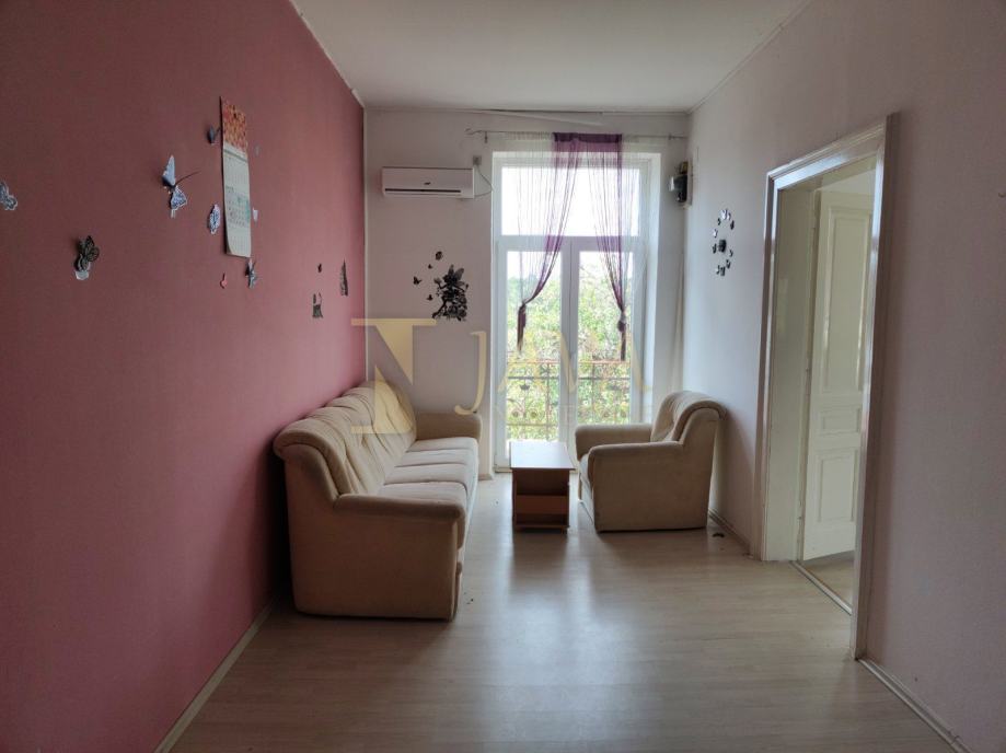 Vrlo svjetao i sunčan prostor okrenut na jug, s dva balkona, velikim prozorima i visokim plafonima.