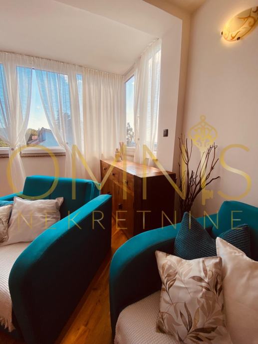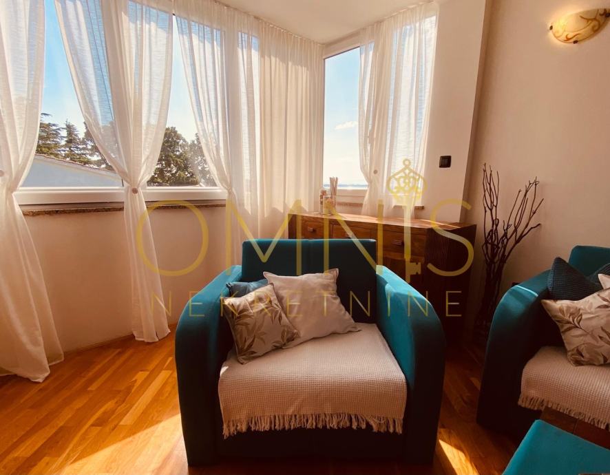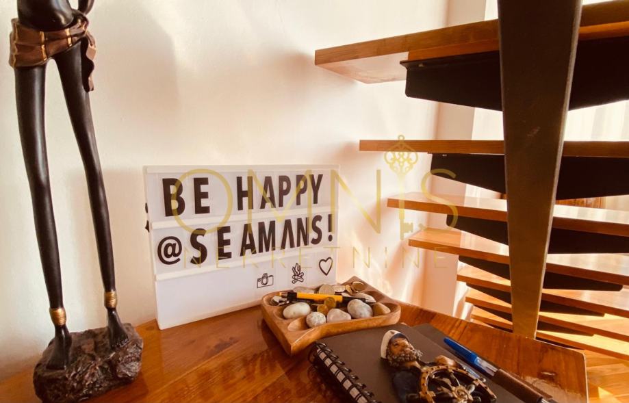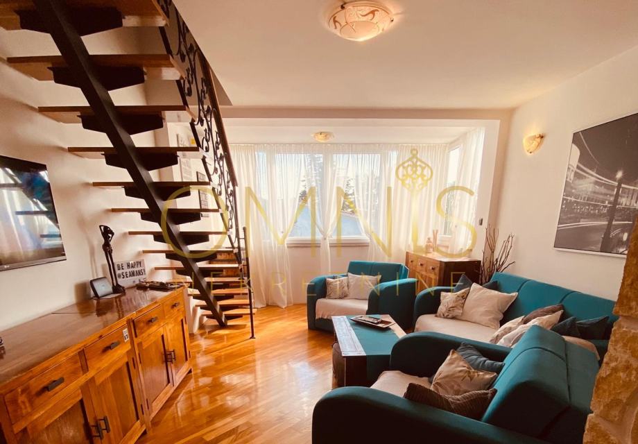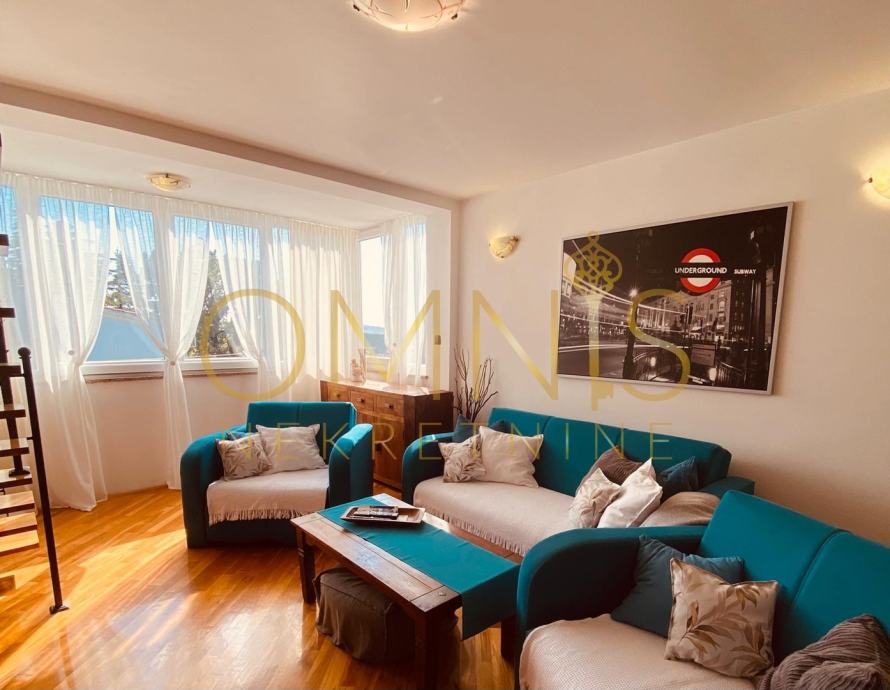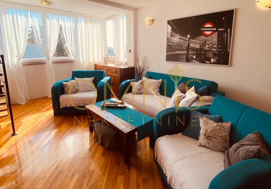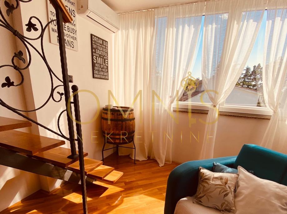 Prodajemo prekrasno uređen apartman u stambenoj zgradi. Sastoji se od dvije etaže. Na prvoj etaži se nalaze zatvoreni balkon, prostrani dnevni boravak, kuhinja, hodnik te kupaonica s wc-om. Na drugoj etaži se nalazi prostrana spavaće soba. Grijanje i hlađenje u stanu je na inverter klima uređaj. Iz stana se pruža prekrasan pogled na more. Ispred zgrade ima dovoljno mjesta za parking. Stan je komletno uređen i namješten te se kao takav i prodaje. Također je stan kategoriziran tako da budući kupac po želji može preuzeti uhodani posao. Odlična nekretnina svega 3 minute pješice od plaže.