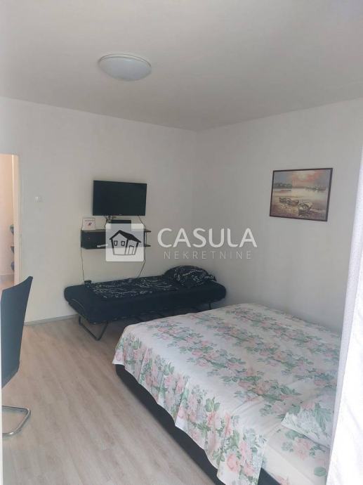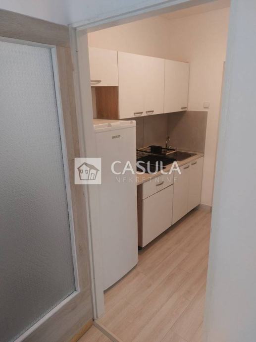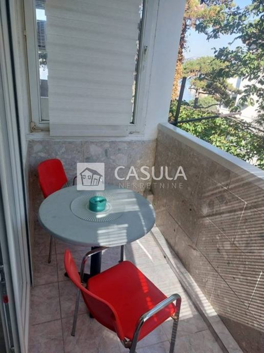 KRALJEVICA, lijepa garsonjera samo 2 min od mora.Nalazi se na visokom prizemlju manje stambene zgrade. Sastoji se od kuhinje, hodnika , jedne velike prostorije od 18 m2 u kojoj se nalazi spavaći i dnevni dio te lijepog balkona s pogledom na more. Stolarija je prije 2 godine promijenjena. Stan je u odličnom stanju i trenutno u funkciji najma. Parking uz zgradu. Odlična lokacija.