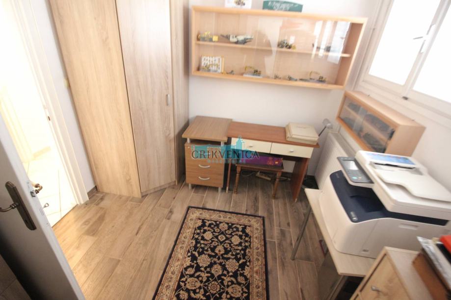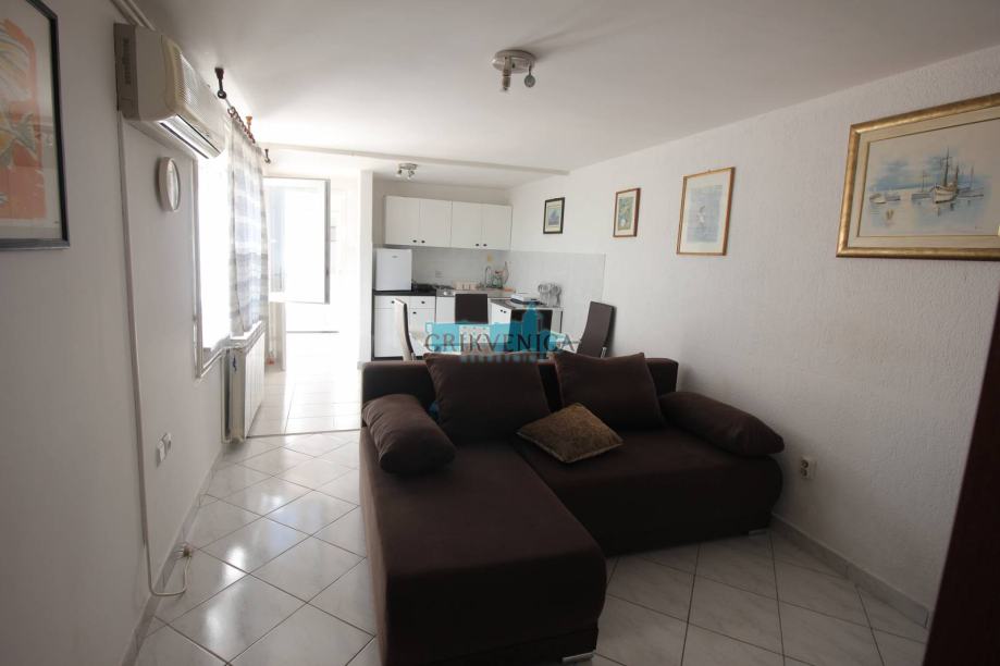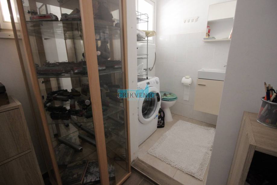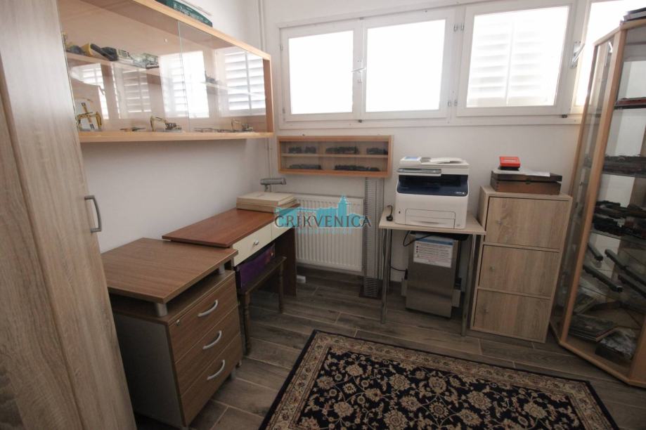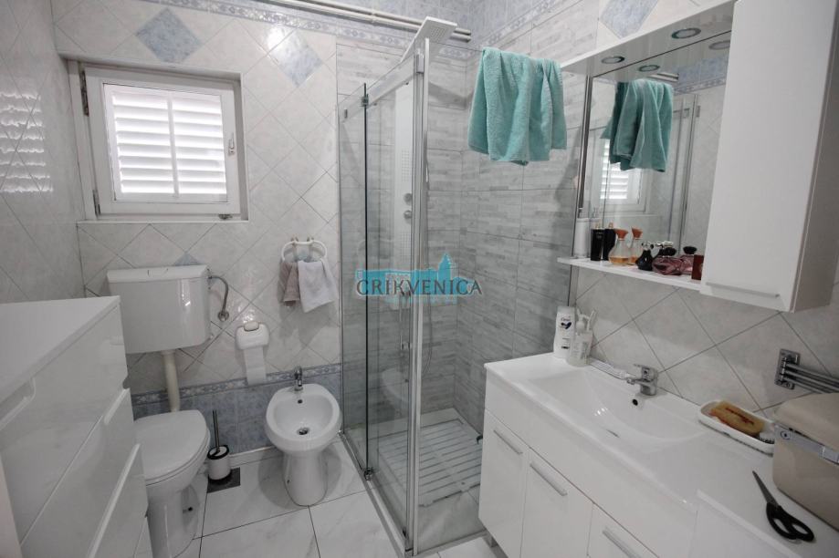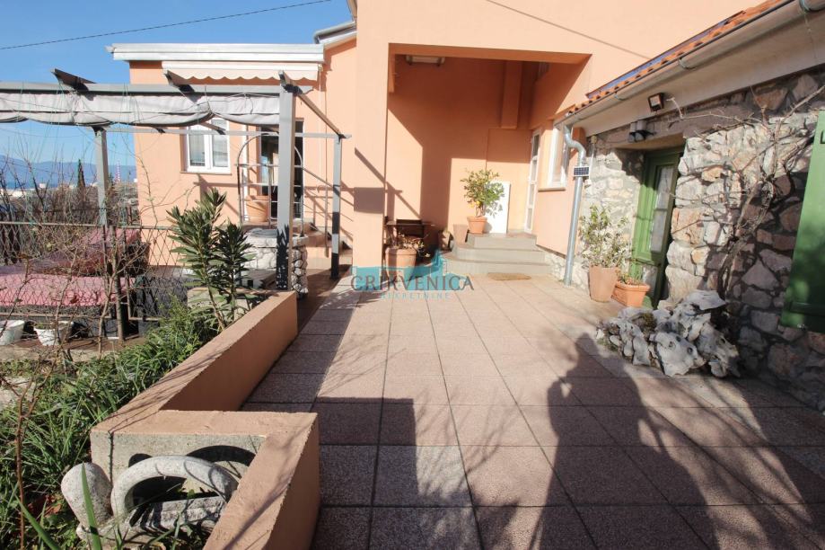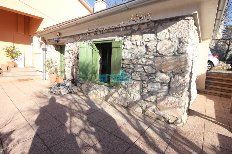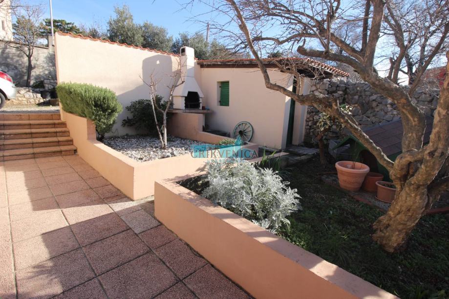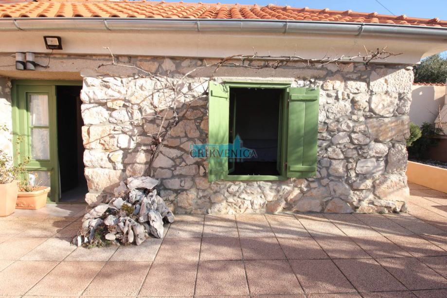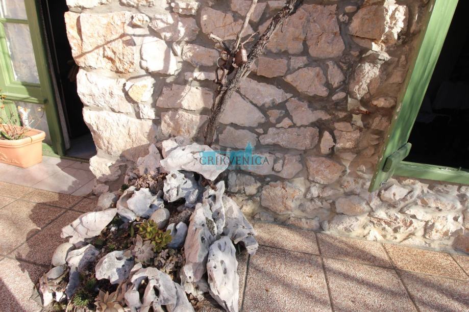 U suterenu se nalazi jednosobni apartman, dok se u visokom prizemlju nalazi stan koji se sastoji od spavaće sobe, kuhinje, radne sobe, 2 kupaonice, te velike prostrane zatvorene terase koja se koristi kao blagovaonica. Uz kuću se nalazi i prigradnja sa još jednom dodatnom prostorijom u kojoj su zadržani elementi primorske arhitekture. Vrt je uređen u mediteranskom stilu sa kaskadama zidanim od obrađenog kamena. Kući pripada i 2 garaže odnosno skladišta, svaki površine 40 m2. Prodaje se namješteno ili djelomično namješteno, ovisno o afinitetima kupca.