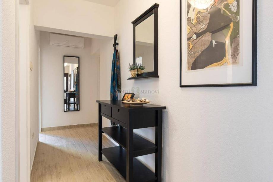 Lijepi, prostrani stan, blizu mora u Kraljevici. Sastoji se od tri spavaće sobe, kupaone, kuhinje, dbnevnog boravka, balkona i krasne terase s predivnim pogledom na more. Stan je potpuno namješten, opremljen ( sve perilice i TV) i uređen, a internet je aktivan. Grijanje je centralno na lož ulje i ukljuceno je u cijenu najma. Stan je ujedno klimatiziran. Prikladni smještaj za poslovne ljude ili djelatnike. Režije struja i voda se plaćaju dodatno po potrošnji.
