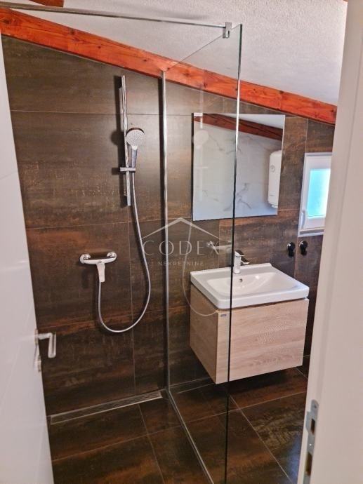 Stan ima terasu s pogledom na more te svoje parking mjesto u dvorištu.
