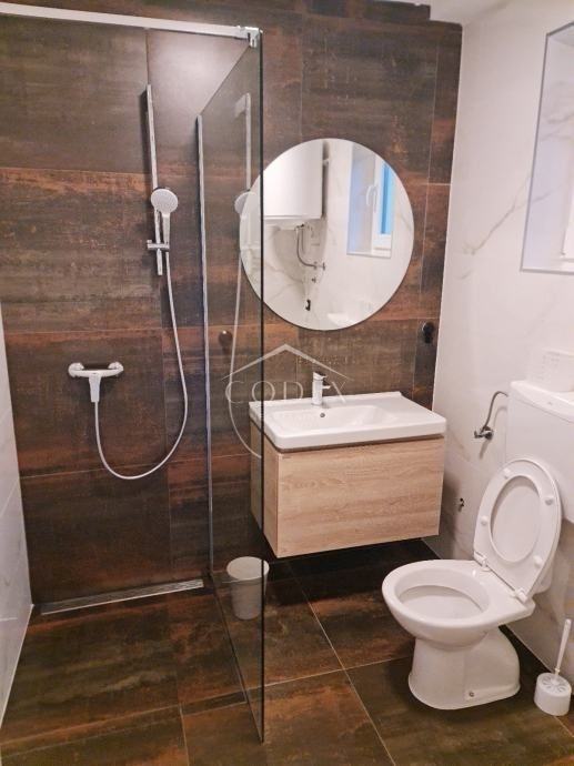 Stan ima terasu s pogledom na more te svoje parking mjesto u dvorištu.