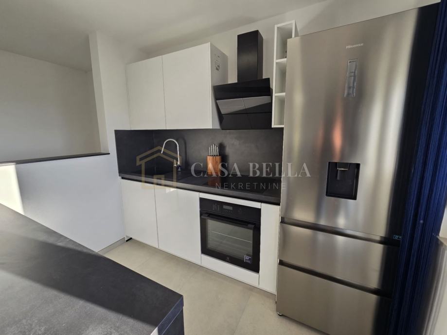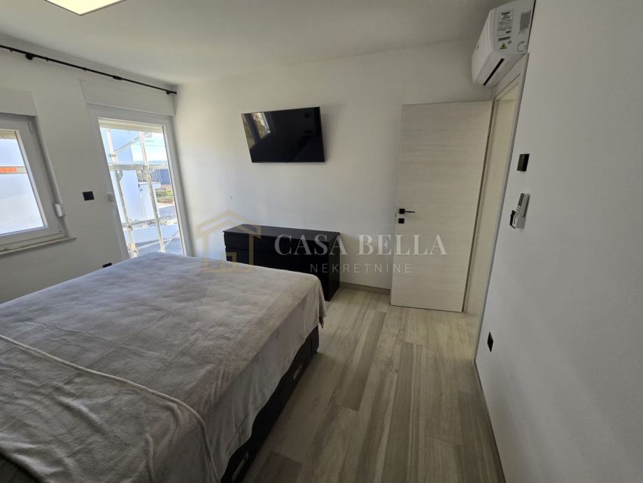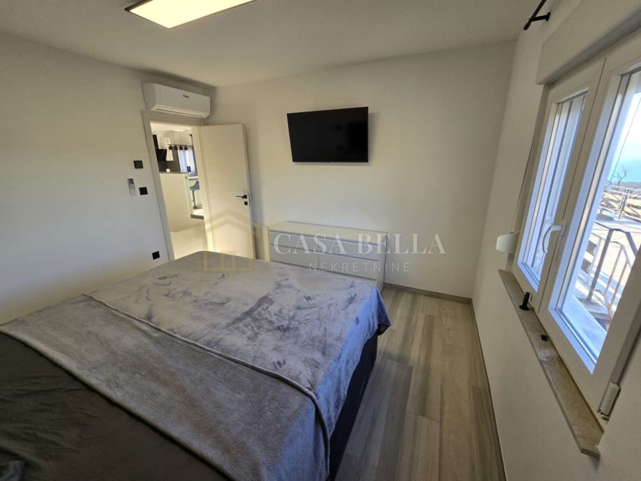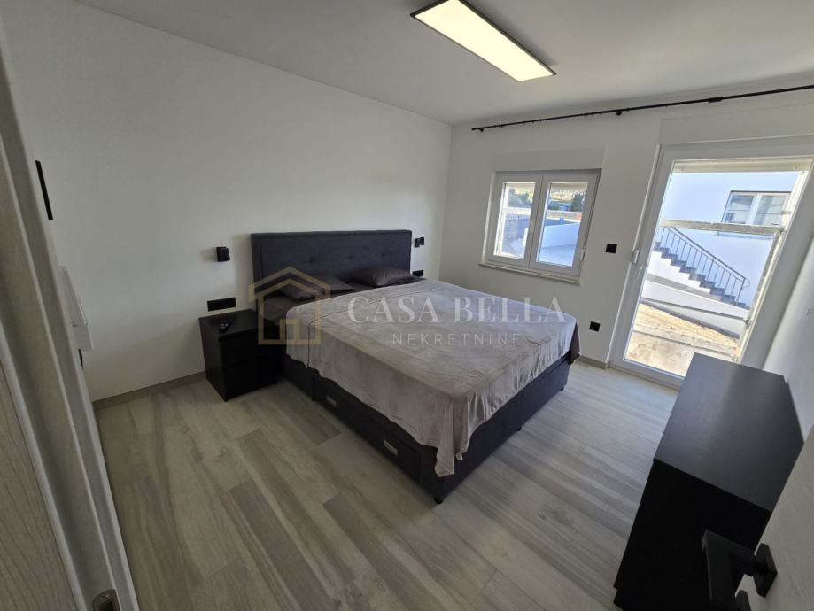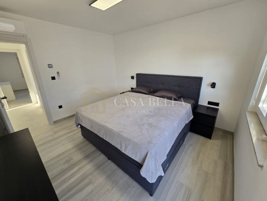 Kuća je potpuno namještena i opremljena modernim uređajima te pruža maksimalnu udobnost. Sastoji se od prostranog dnevnog boravka povezanog s kuhinjom i blagovaonicom u otvorenom konceptu, dvije udobne spavaće sobe i suvremene kupaonice. Stan ima veliku terasu s koje se pruža prekrasan panoramski pogled na more, savršenu za opuštanje i uživanje u zalascima sunca. Kroz cijeli kat i konobu je provedeno podno grijanje koje pruža iznimnu udobnost i luksuz tijekom cijele godine. U svim sobama su ugrađeni novi klima uređaji.
